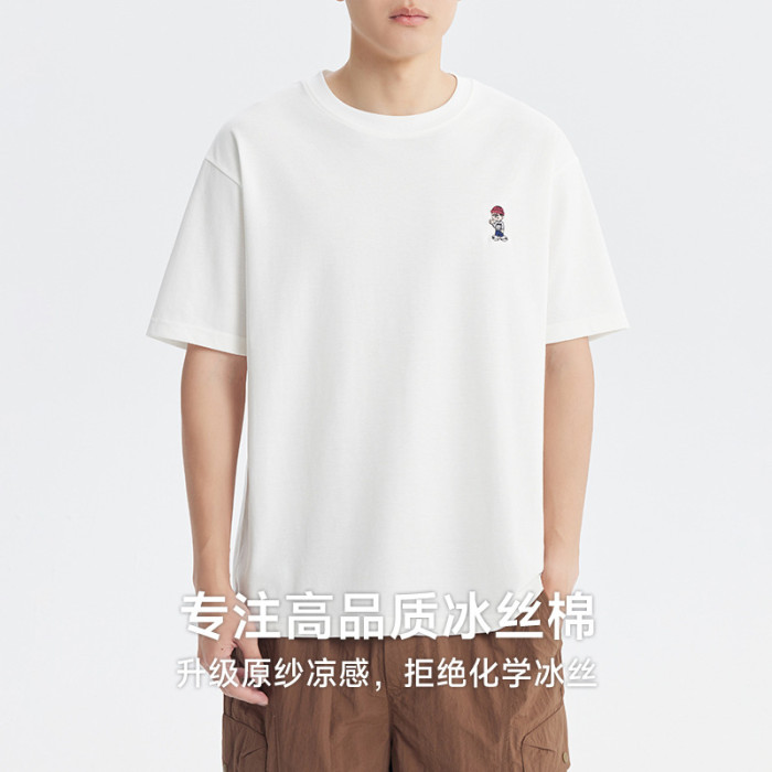 速乾冰絲棉 圓領印花涼感男t恤短袖夏季新款潮透氣半袖體恤衫