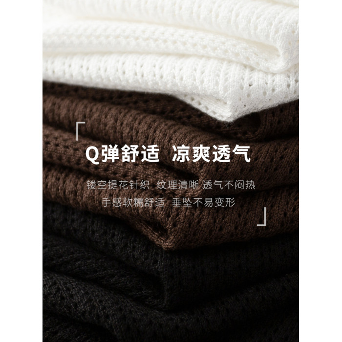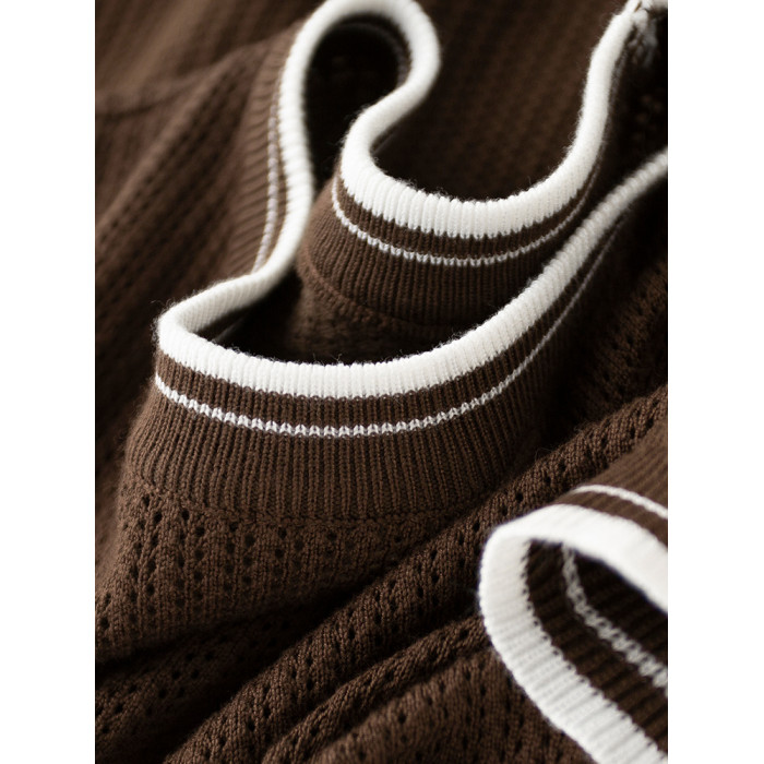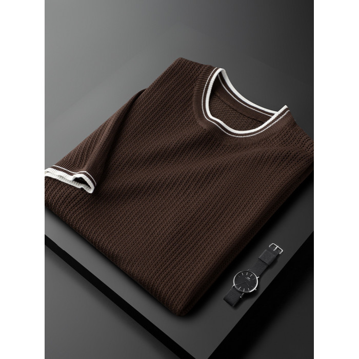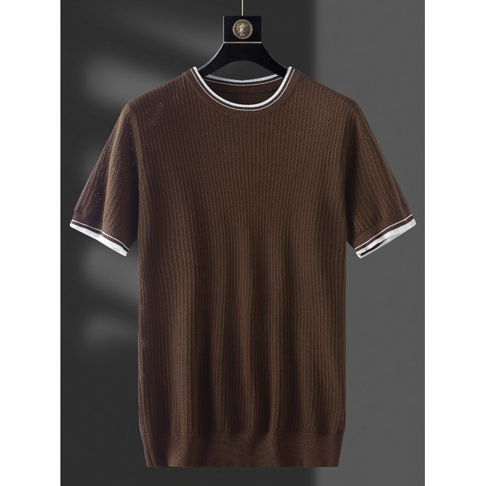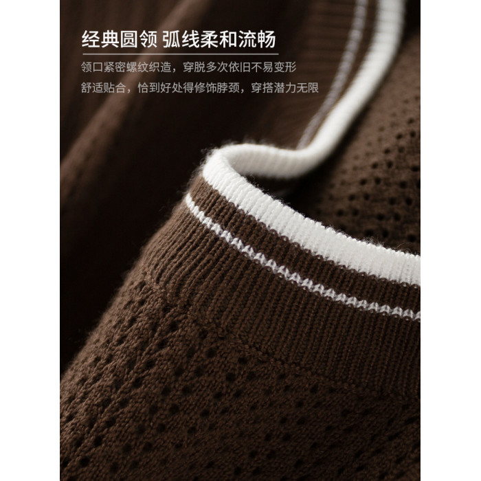 夏季鏤空針織衫男短袖t恤夏季薄款潮流撞色修身半袖男T恤