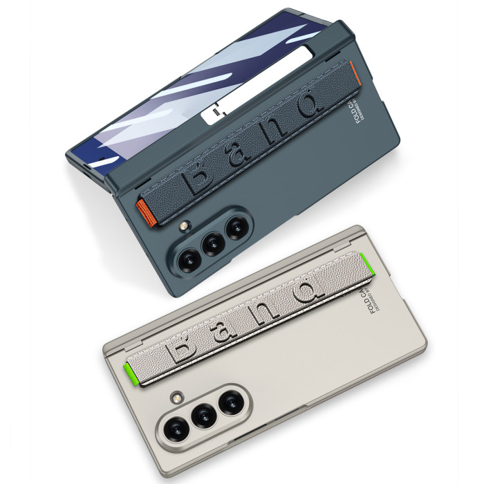 適用三星Z Fold7手機殼彈力腕帶側包支架簡約保護套轉軸超薄磨砂