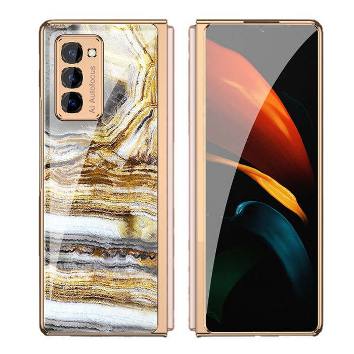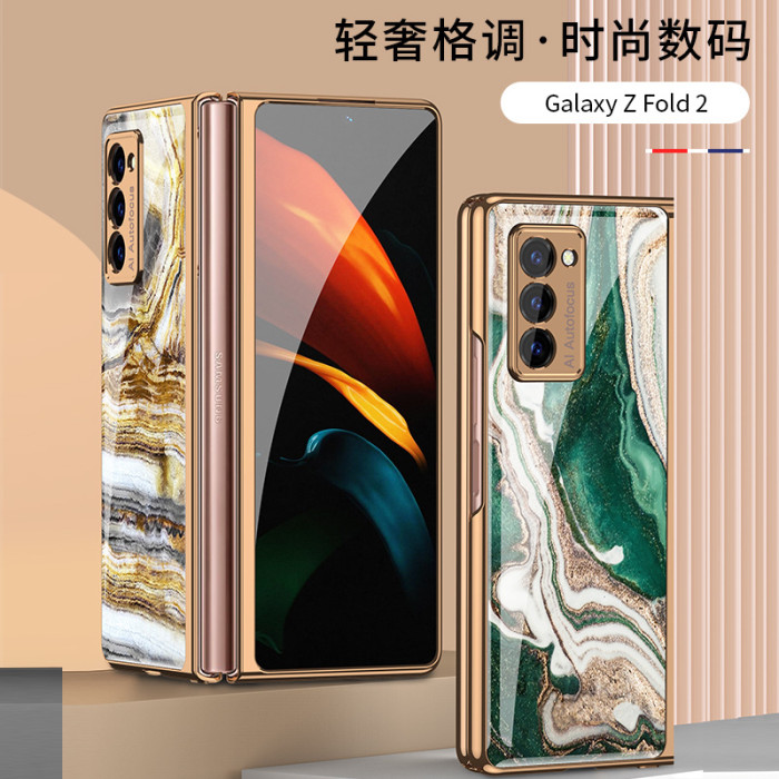 適用三星fold2手機殼折曡保護套全包電鍍彩繪玻璃殼w21手機殼GKK
