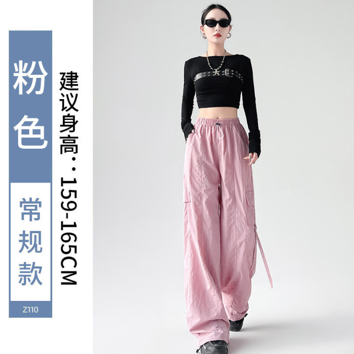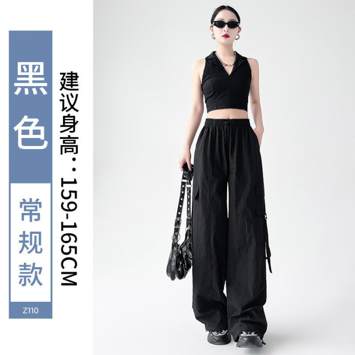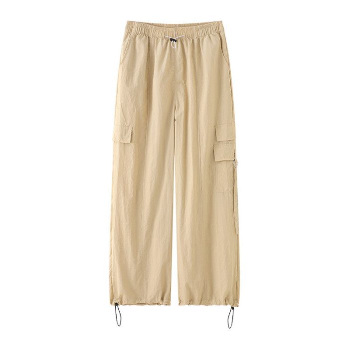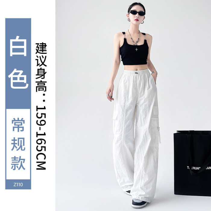 白色速乾工裝褲女2024新款夏季薄款高腰冰絲濶腿褲休閒美式運動褲