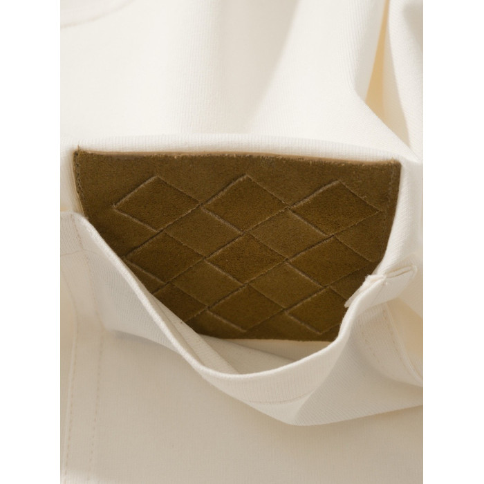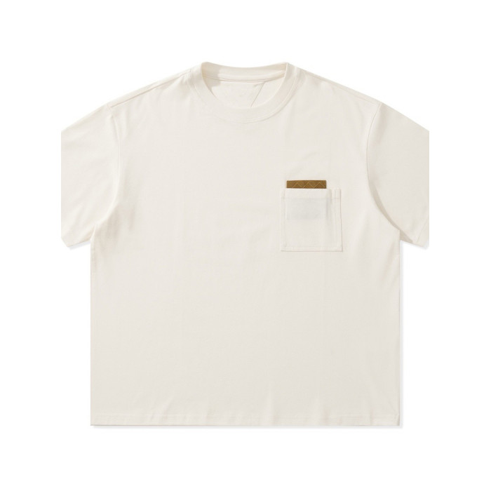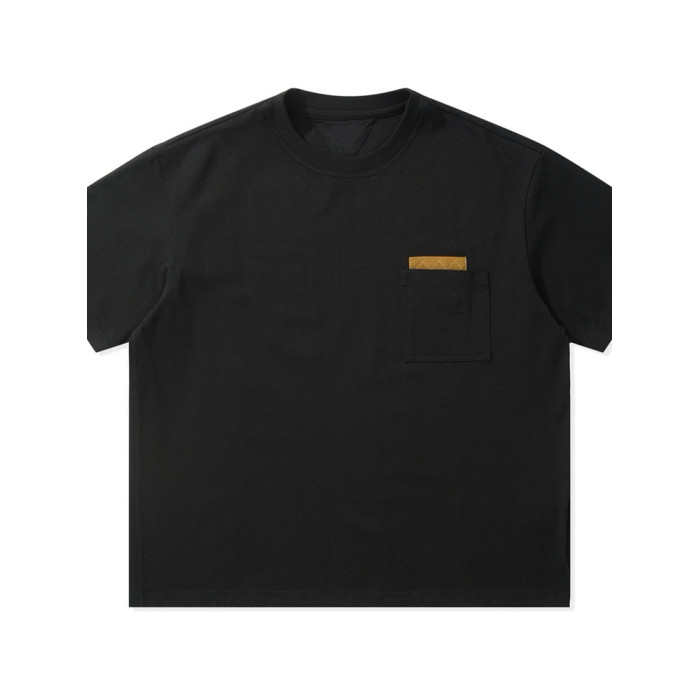 SLKK 真皮編製皮牌高級簡約風口袋裝飾純棉寬松休閒短袖男T恤