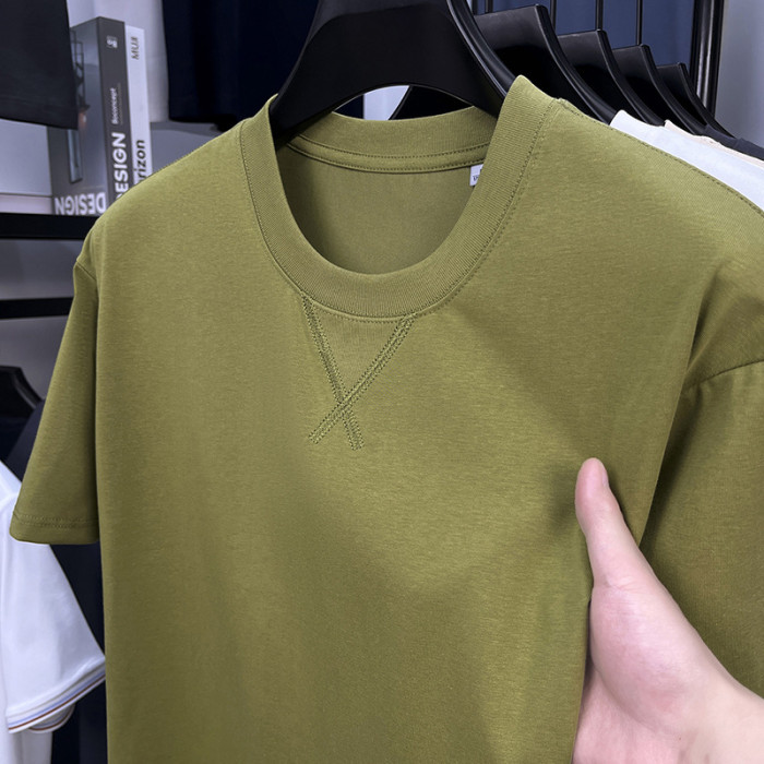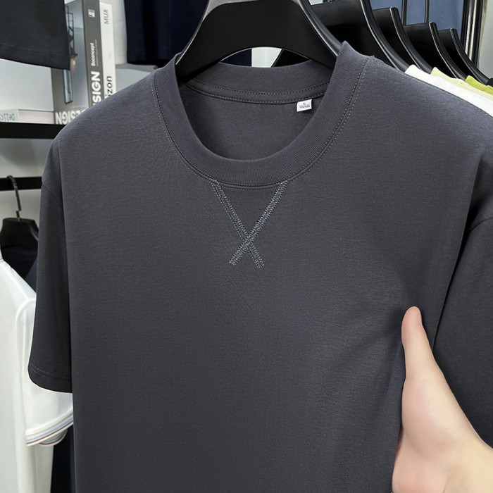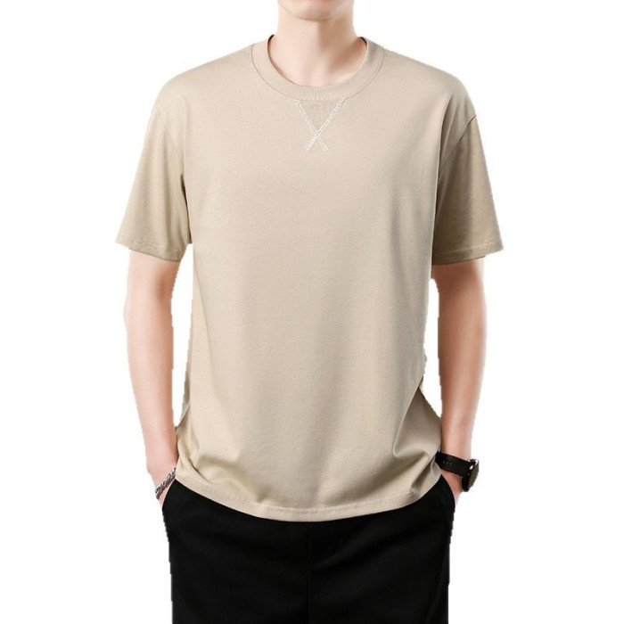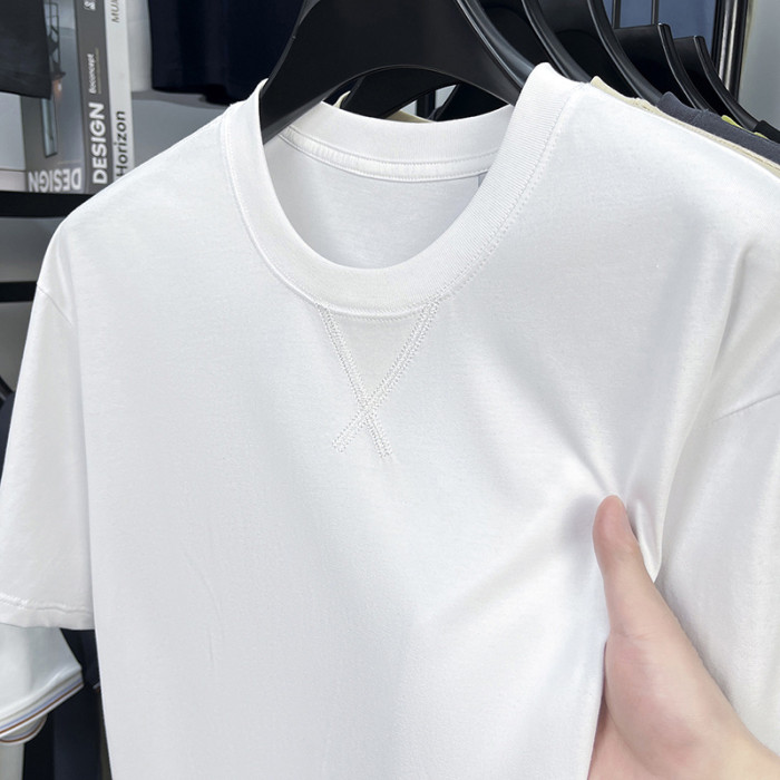 男士短袖棉質夏季新款圓領潮寬松時尚重磅透氣短袖男t恤