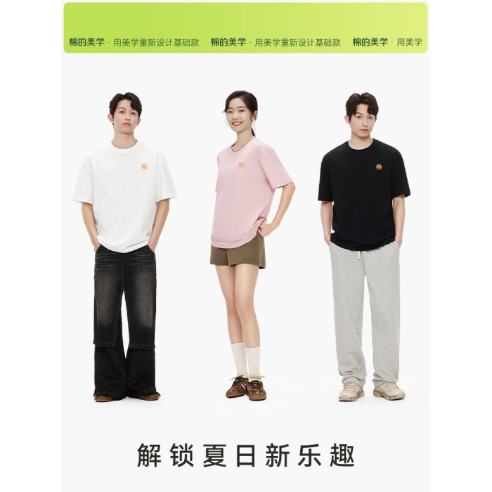 「棉的美學」簡約男T恤潮流透氣夏季印花透氣短袖寬松百搭上衣