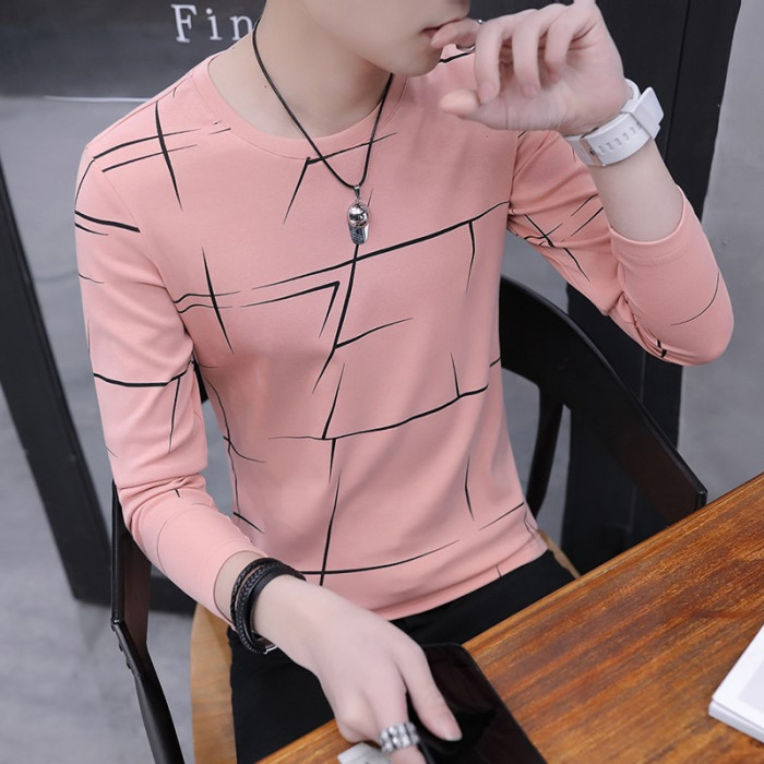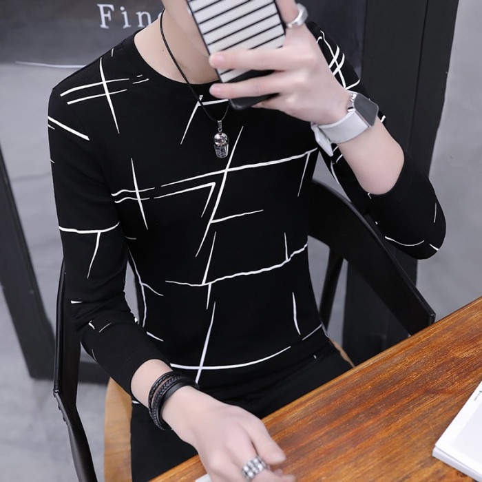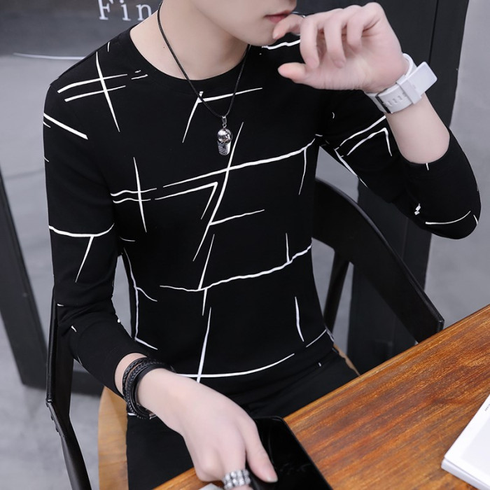 長袖男t恤秋季圓領潮流修身衛衣薄款學I生個性韓版上衣服秋裝男裝