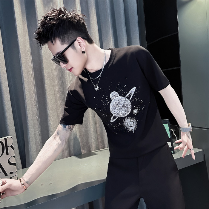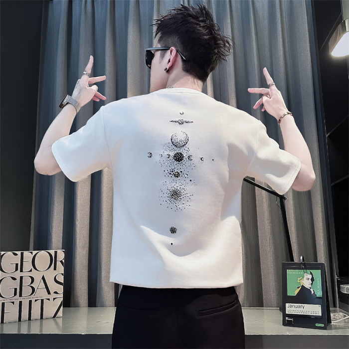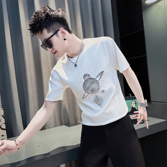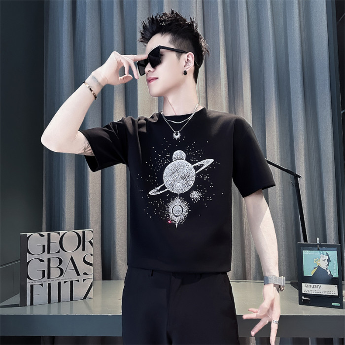 小碼夏季修身短袖男t恤潮牌燙鑽T恤小個子男生流行穿搭夏裝半袖薄