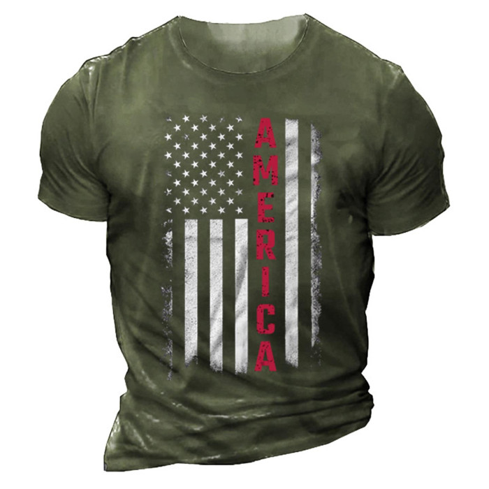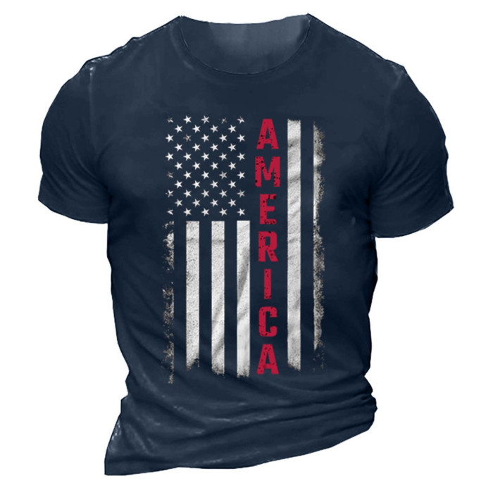 歐美男休閒圓領短袖燙畫印花寬松套頭男T恤衫