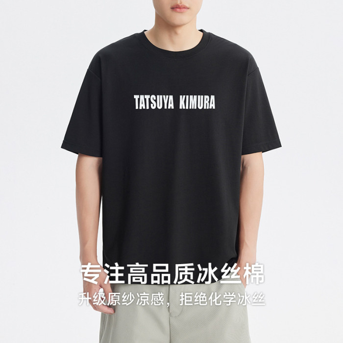 速乾冰絲棉 圓領印花涼感男t恤短袖夏季新款潮透氣半袖體恤衫