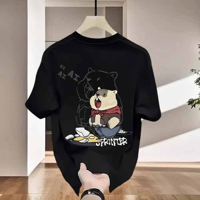 夏季短袖男t恤2025年新款潮流痞帥青年寬松休閒百搭圓領純棉上衣