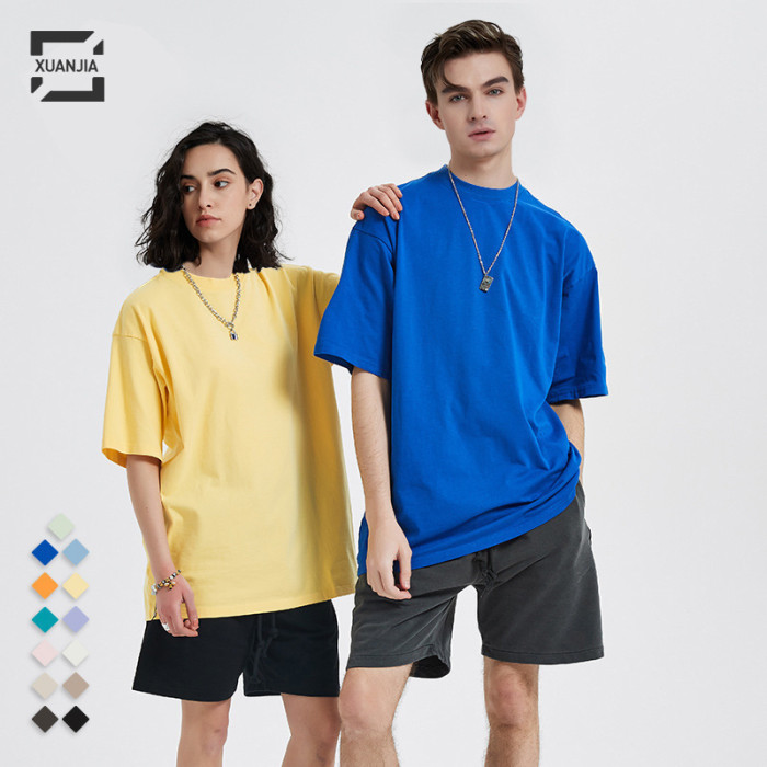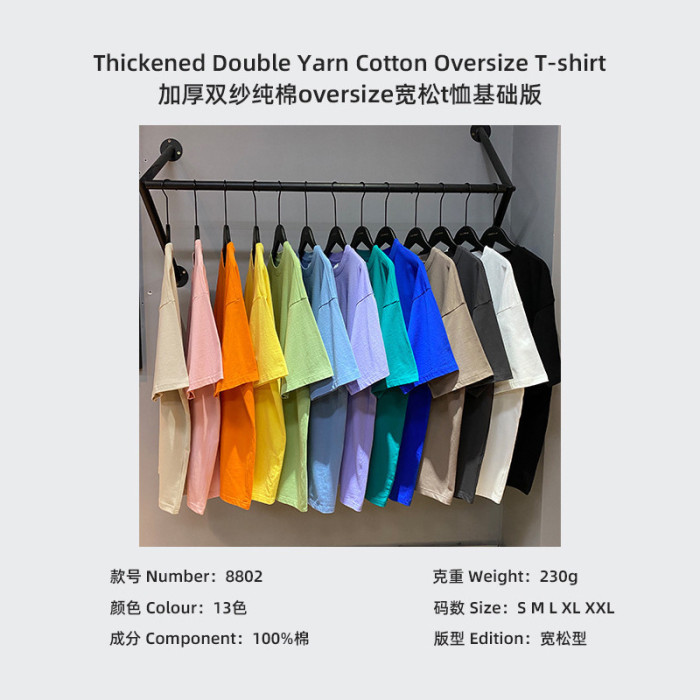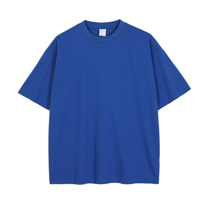 夏季男裝雙紗230克純棉純色空白短袖t恤落肩寬松潮牌體恤男T恤