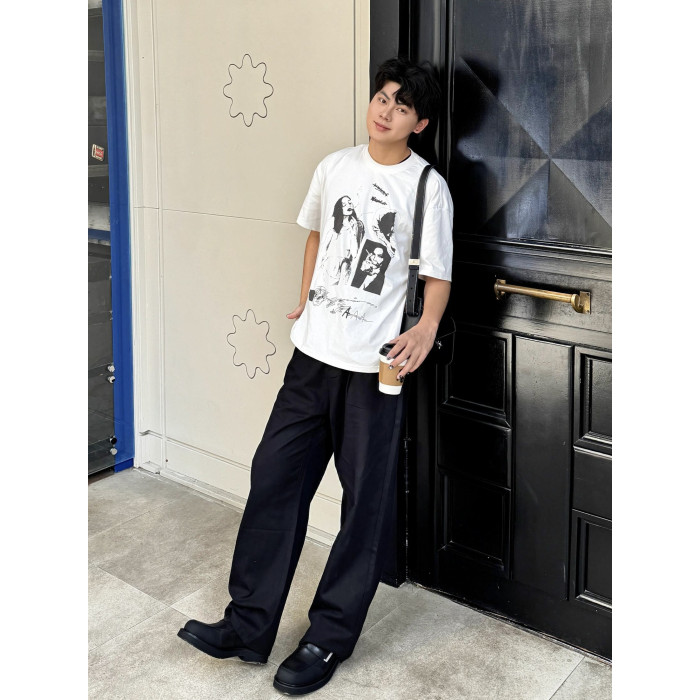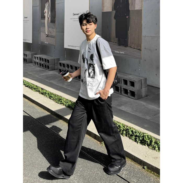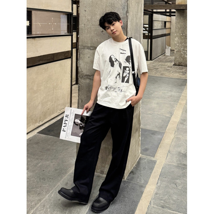 頹廢天使300G純棉索羅娜人像塗鴉美式數碼直噴印花短袖男t恤寬松