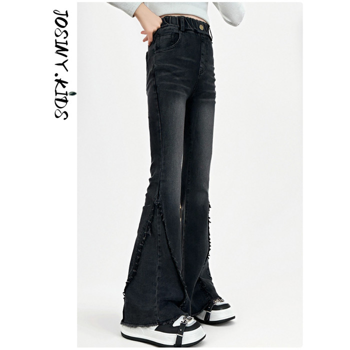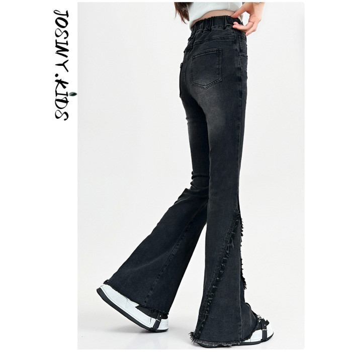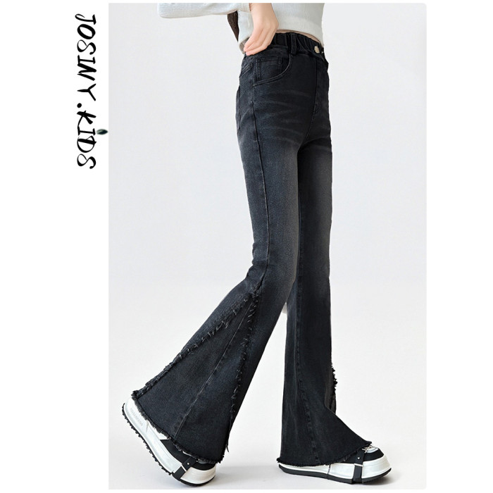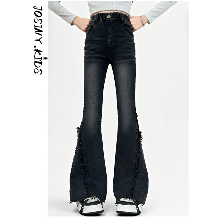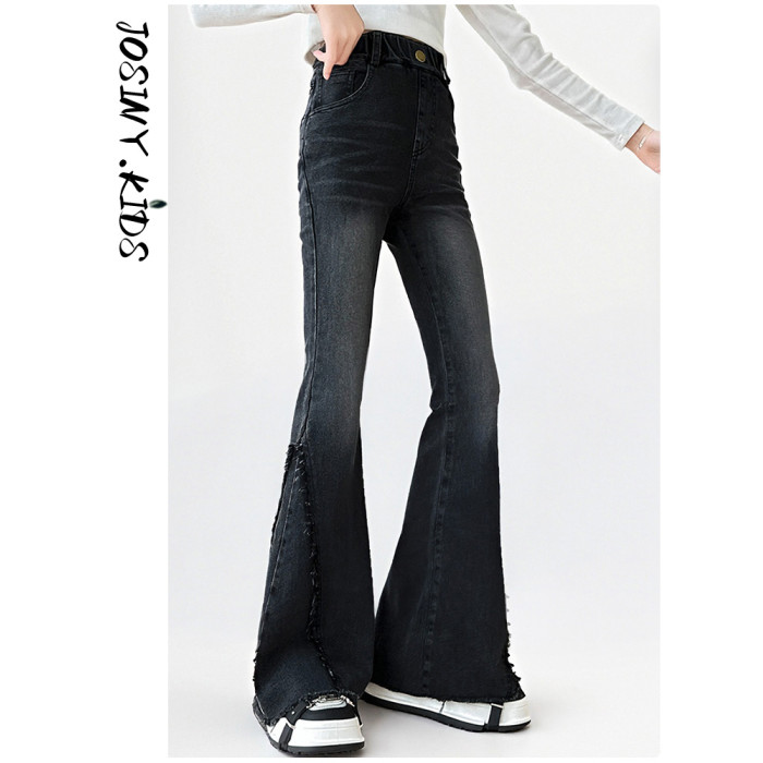 卓詩尼女童喇叭褲春秋款2025新款兒童牛仔褲女孩中大童修身微喇褲