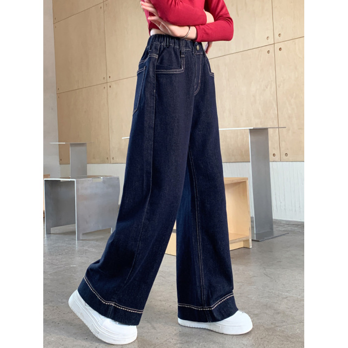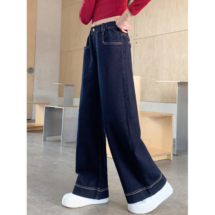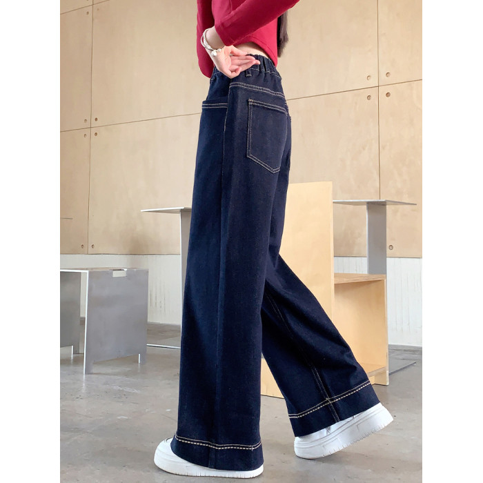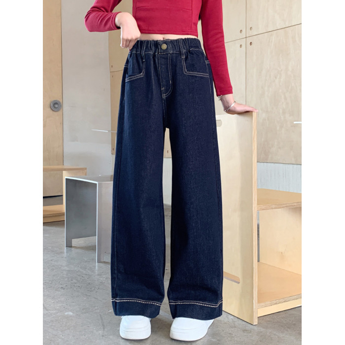 女童春季褲子中大童牛仔褲2025新款兒童春秋濶腿褲童裝寬松休閒褲