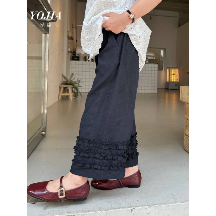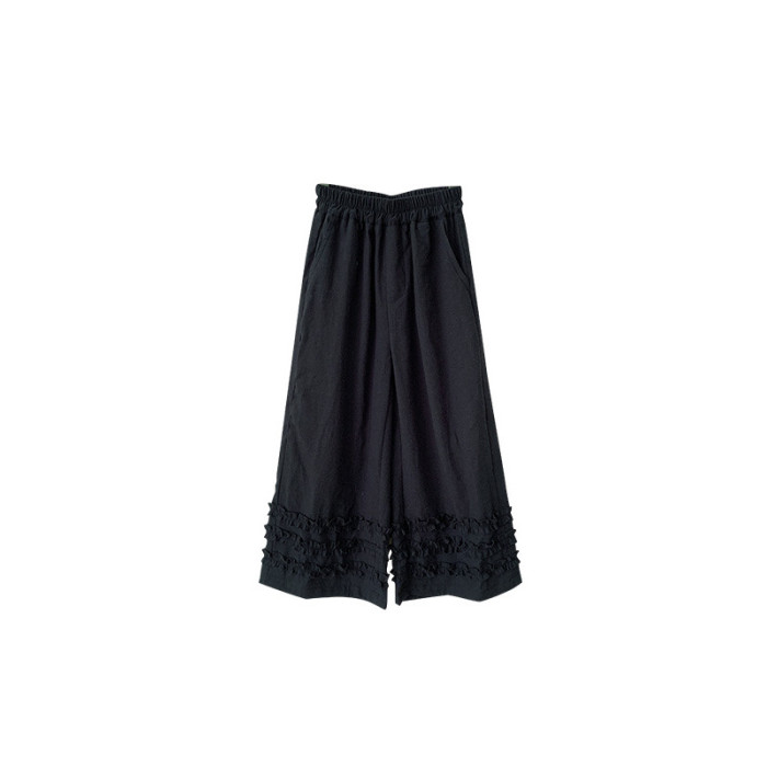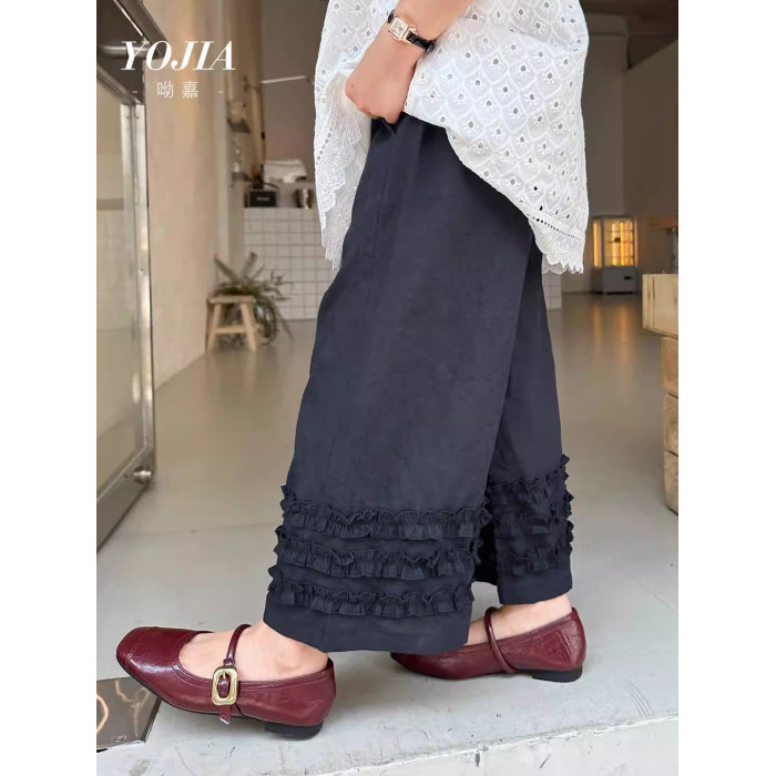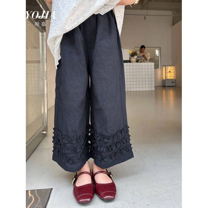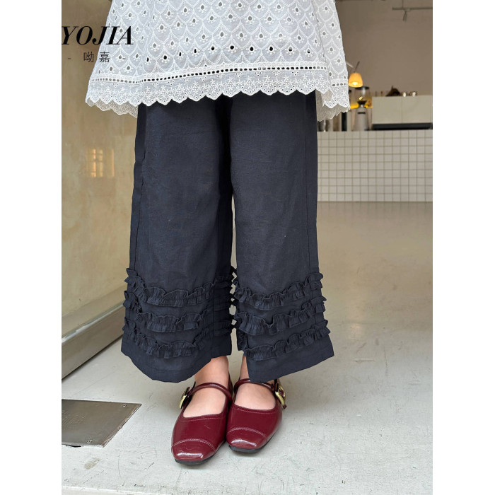 女童濶腿褲夏季2025新款洋氣寬松女孩花邊直筒褲薄款兒童七分褲子