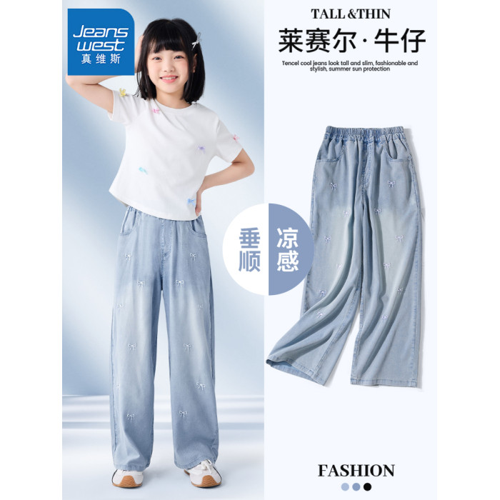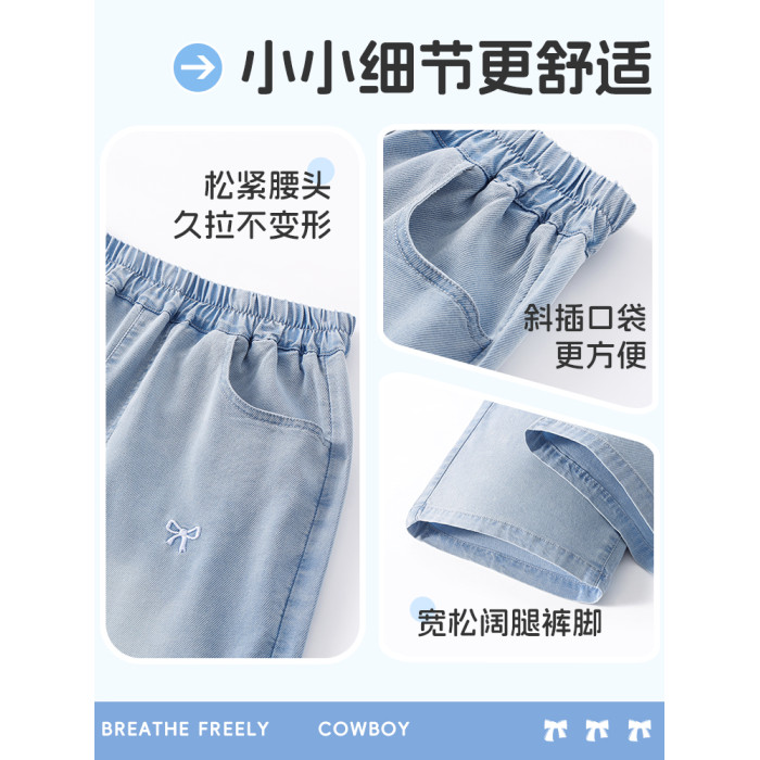 真維斯童裝女童褲子薄款兒童夏褲天絲牛仔褲2025新款夏季夏裝女