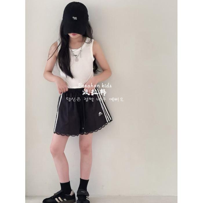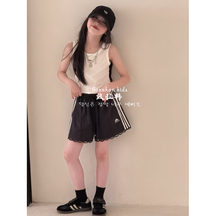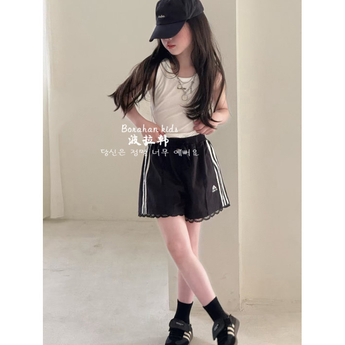 波拉韓夏季女童蕾絲拼接短褲2025女孩運動短褲中大童熱褲三分褲子