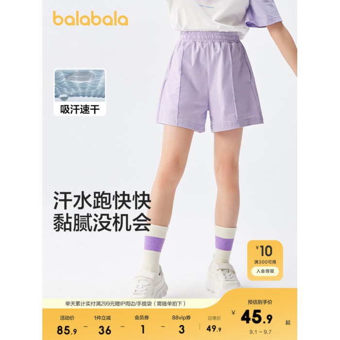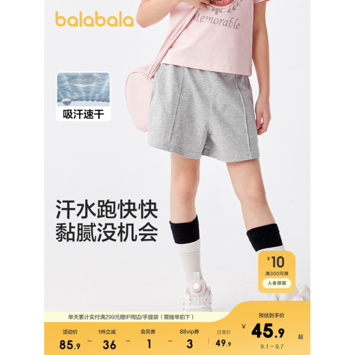 巴拉巴拉兒童短褲女童夏裝新款速乾運動褲子時尚童裝中大童潮