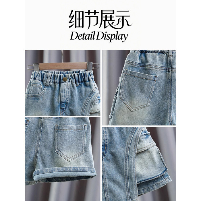 女童夏季短褲2025新款中大童洋氣牛仔裙褲女孩兒童夏裝百搭褲子薄