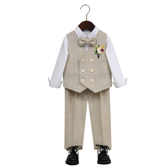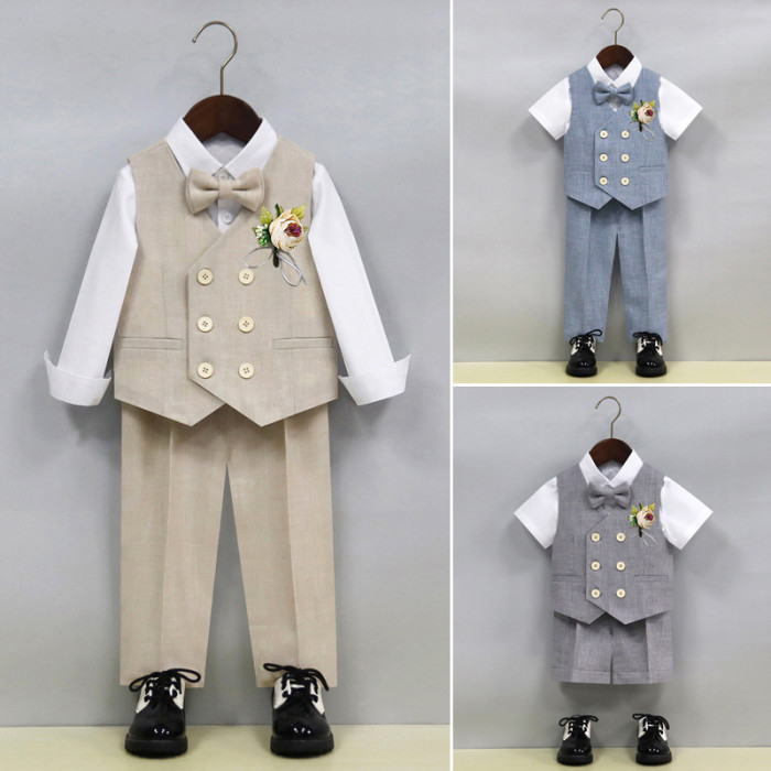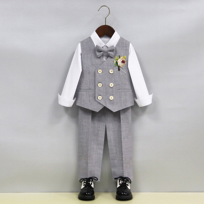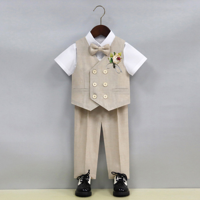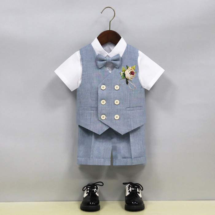 顔色 | 淺灰色:馬甲+短褲+淺灰色雙層領結+米色胸花 |