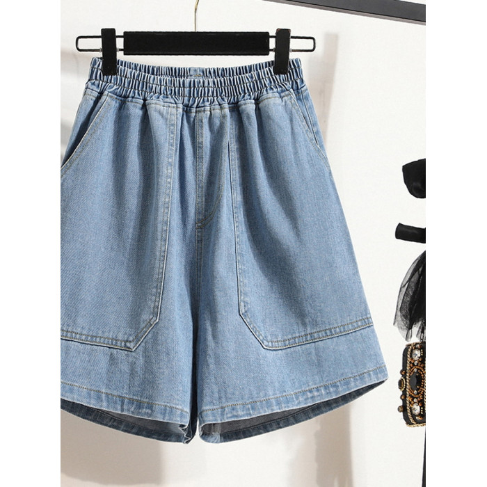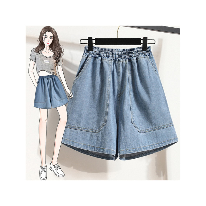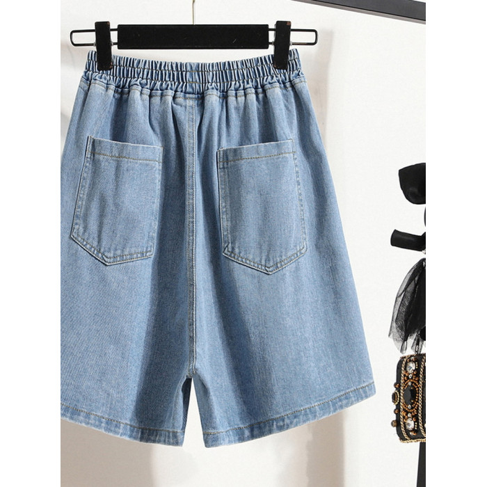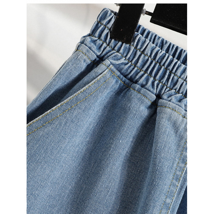 女大童短褲初中生12嵗女孩松緊腰寬松牛仔胖女童中童薄款五分夏季