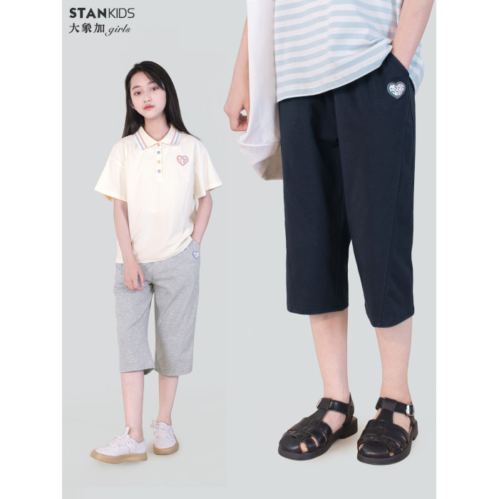 大象加冰感棉女童直筒七分褲2025夏季新品中大童休閒褲學生運動褲