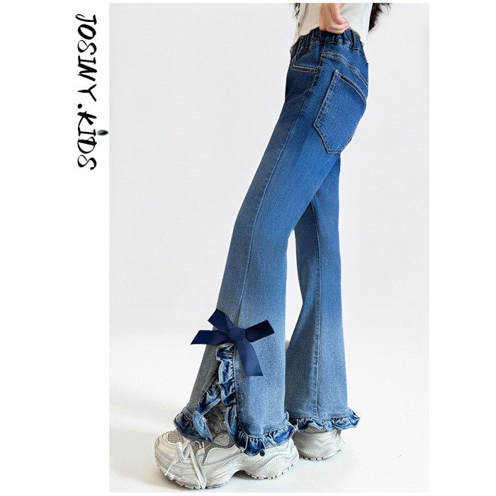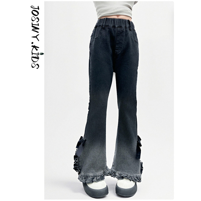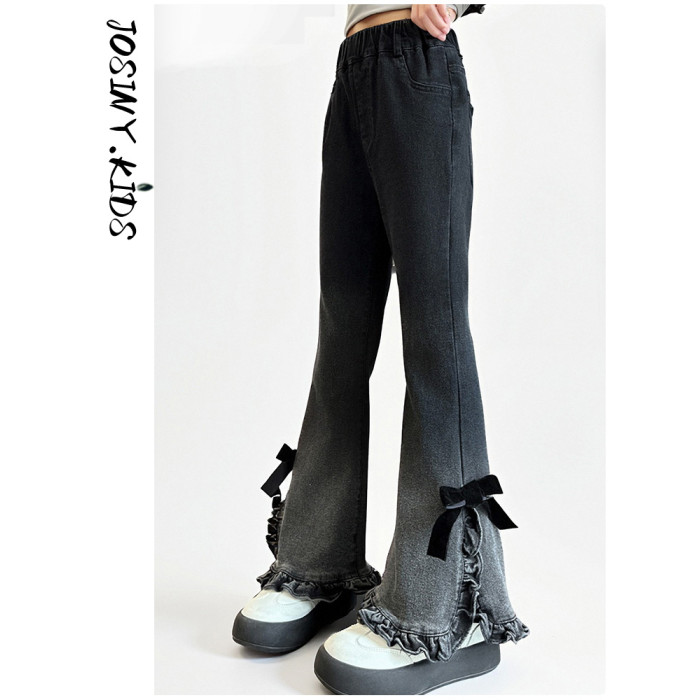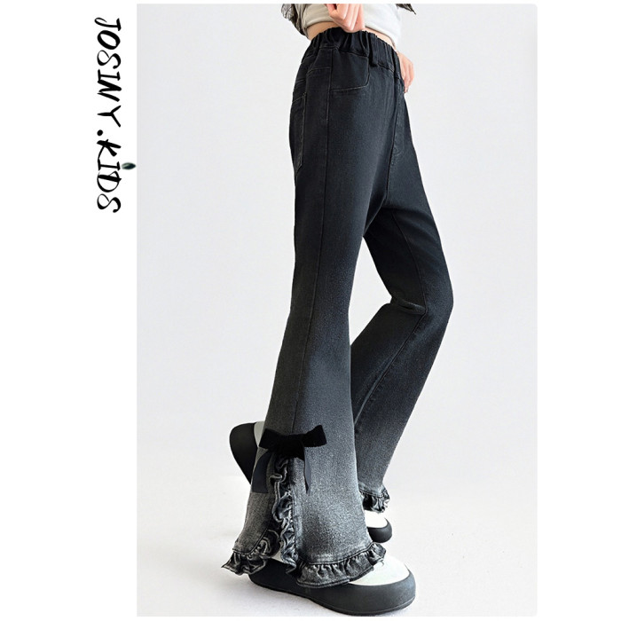 卓詩尼女童喇叭褲春秋季2025新款黑色牛仔褲洋氣時尚修身百搭長褲