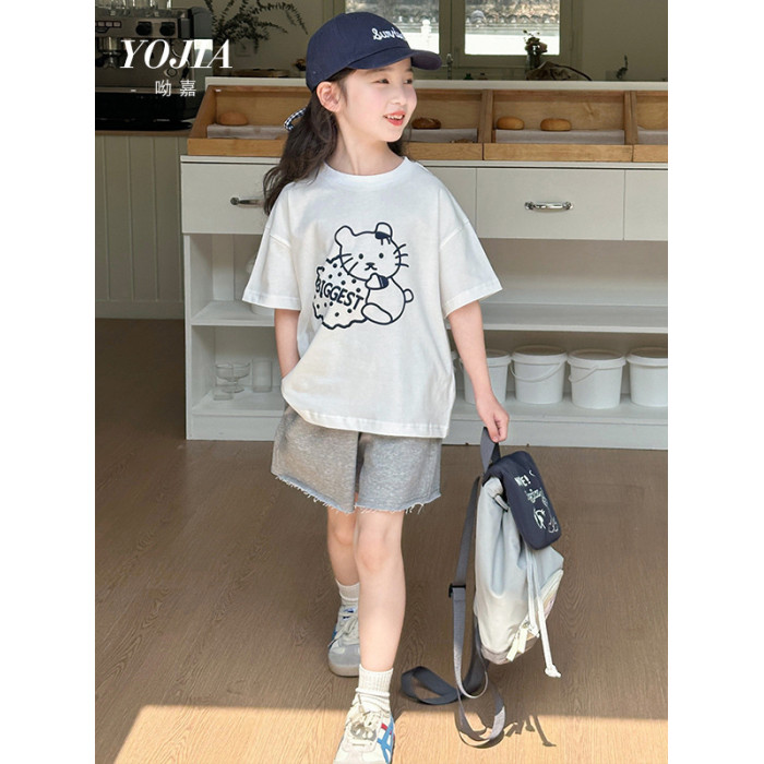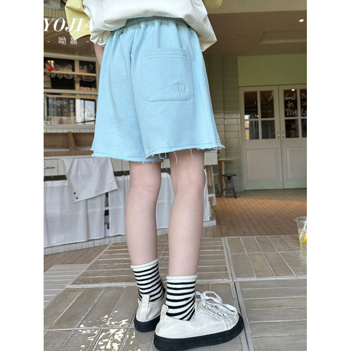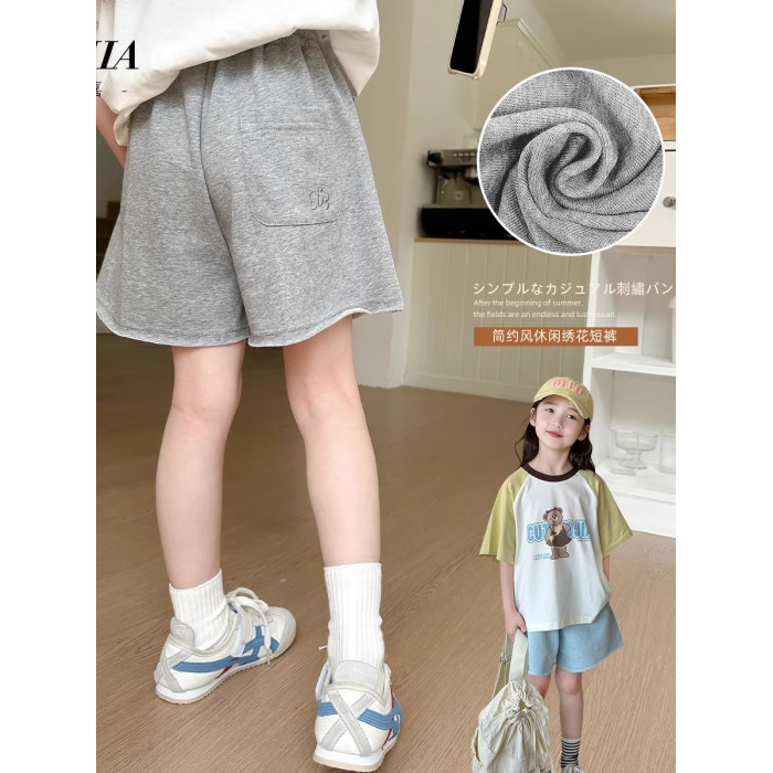 女童休閒綉花短褲2025夏季新款寬松百搭小女孩五分褲夏褲兒童褲子