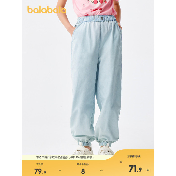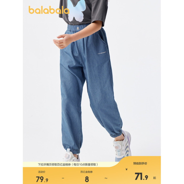 巴拉巴拉女童牛仔褲兒童褲子夏裝中大童長褲天絲牛仔束腳褲甜美潮