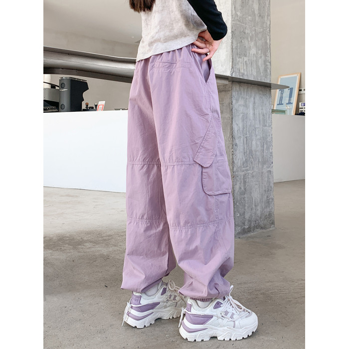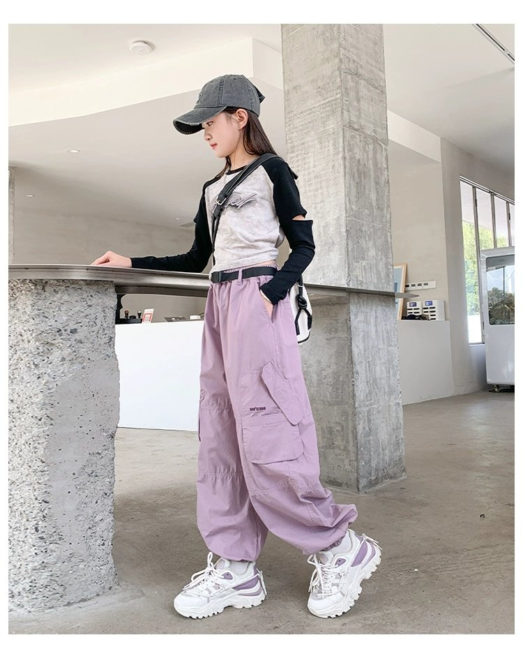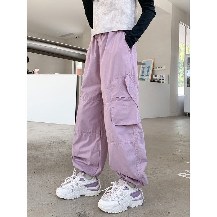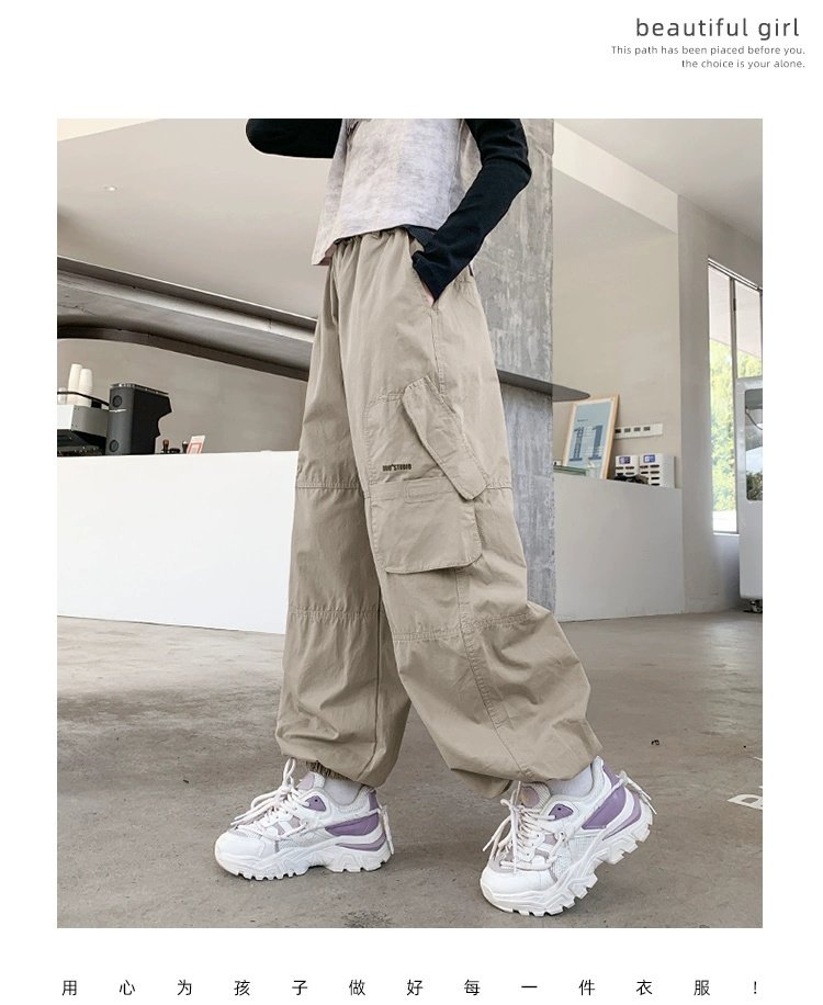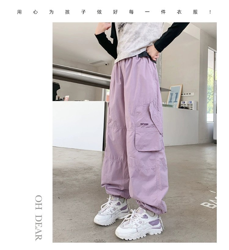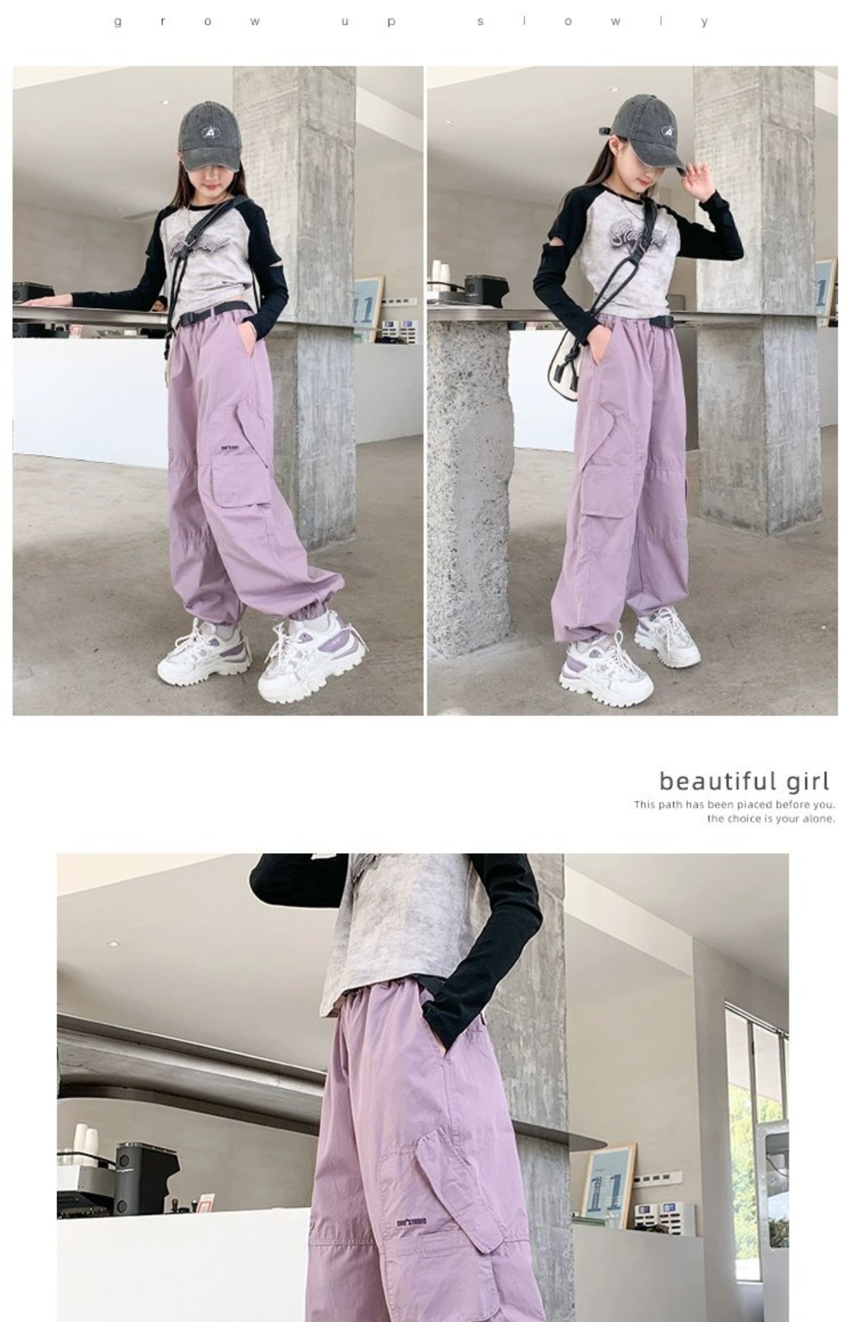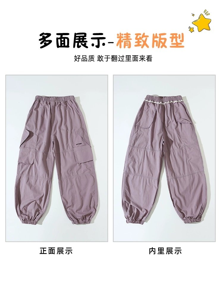 女童褲子春秋新款裝季胖孩粉色中大童兒童工裝休閒黑色薄夏天防蚊