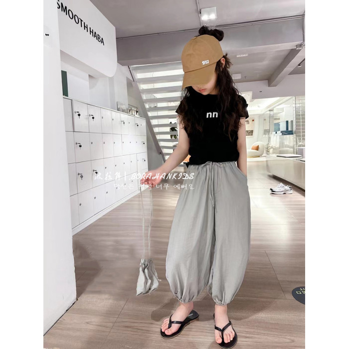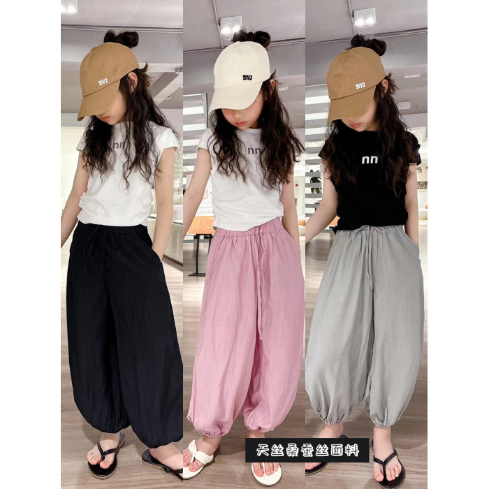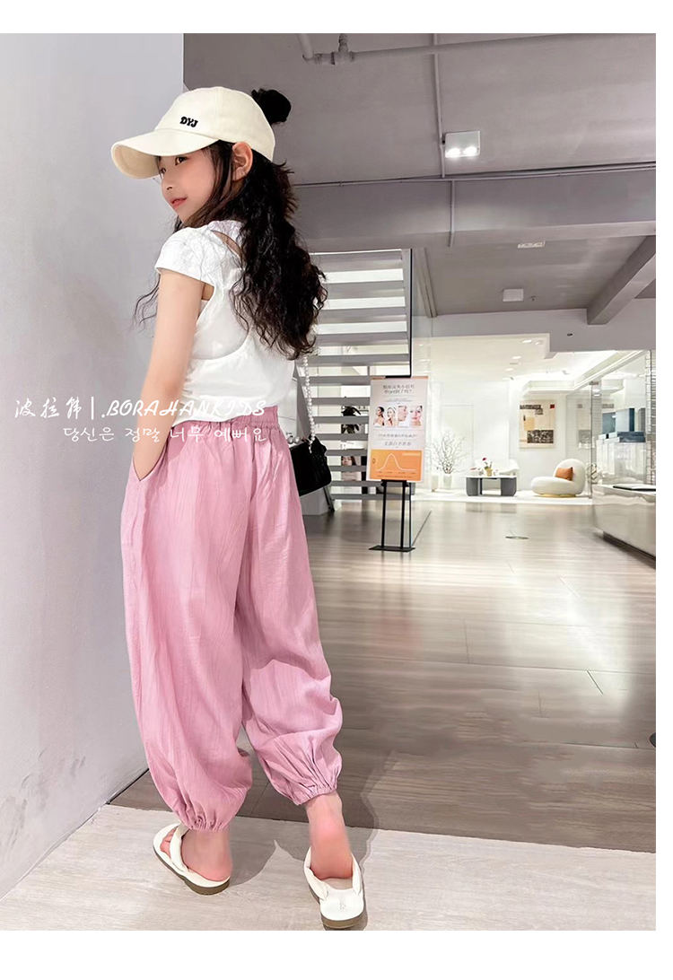 波拉韓女童天絲防蚊褲兒童超薄涼涼褲2025夏中大童燈籠褲休閒褲子