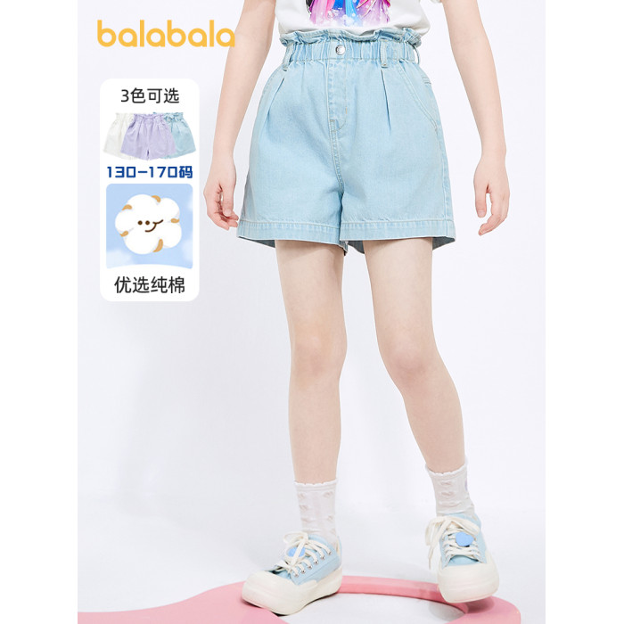 巴拉巴拉女童短褲大童牛仔純棉花苞褲兒童休閒褲子夏季新款童裝潮