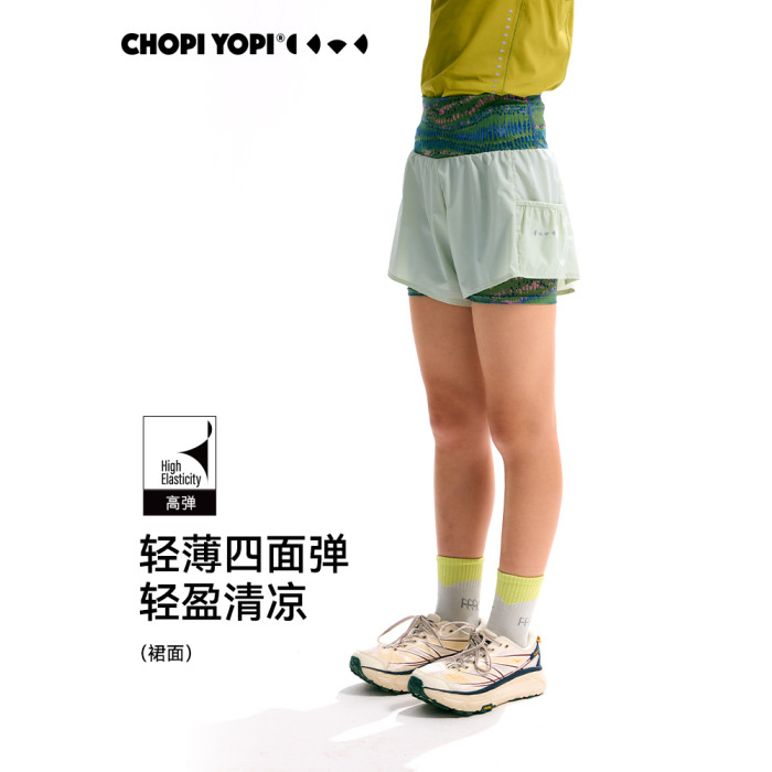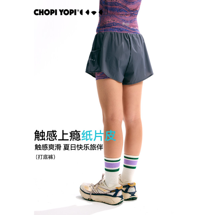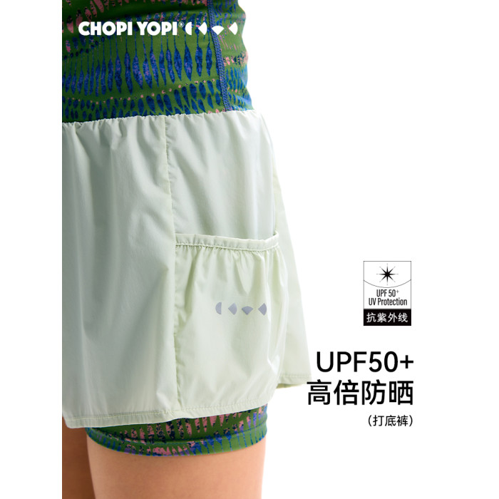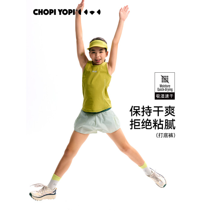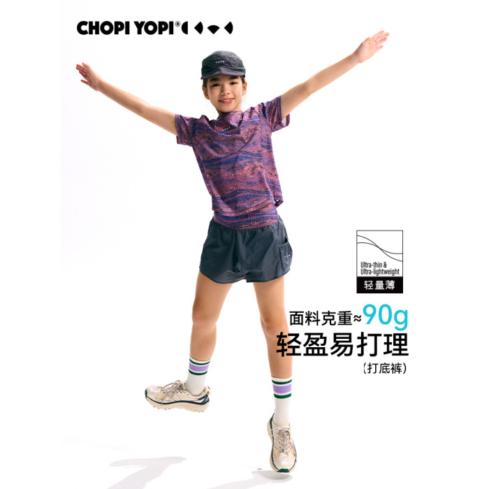 chopiyopi【紙片皮】女童印花拼接假兩件短褲防曬速乾五分運動褲
