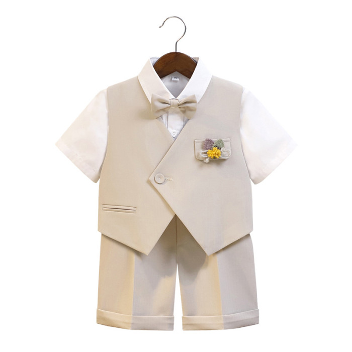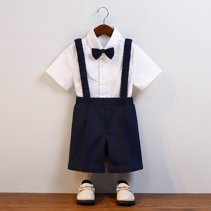 顔色 | 粉色6件套(短袖襯衫+馬甲+短褲+胸花+領結+背帶) |