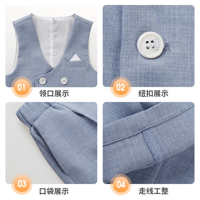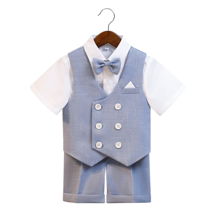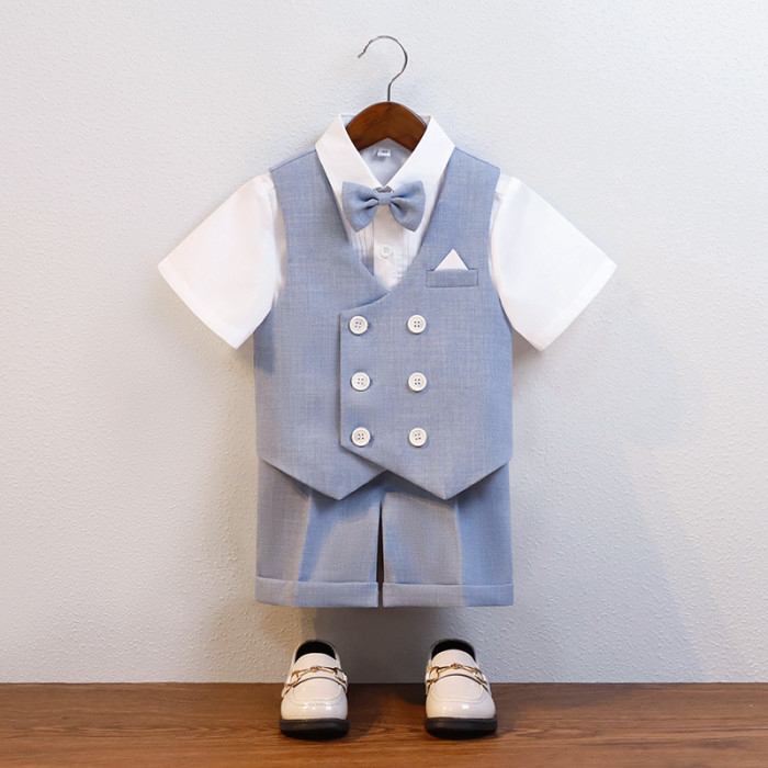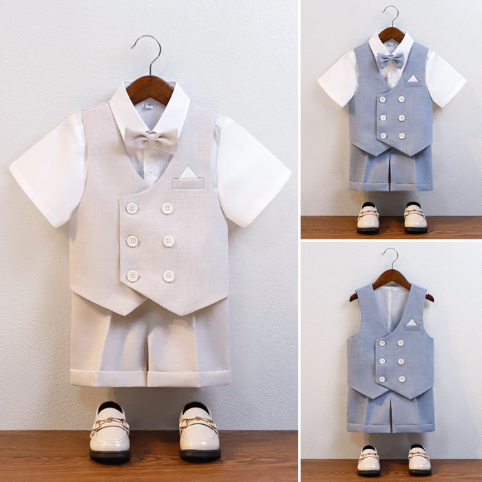 顔色 | 淺灰4件套(短袖襯衫+馬甲+短褲+領結) |