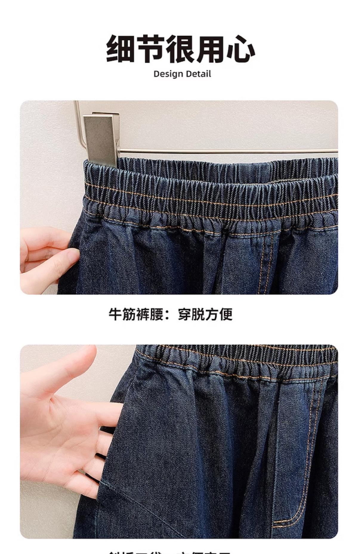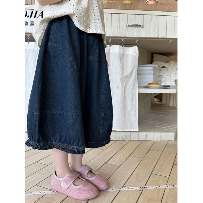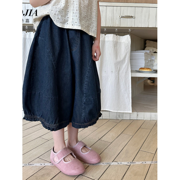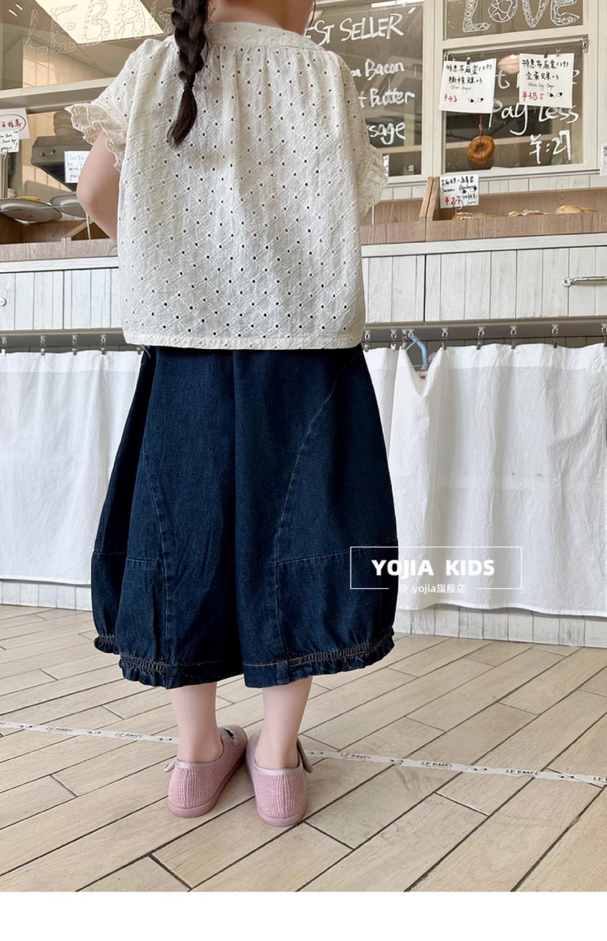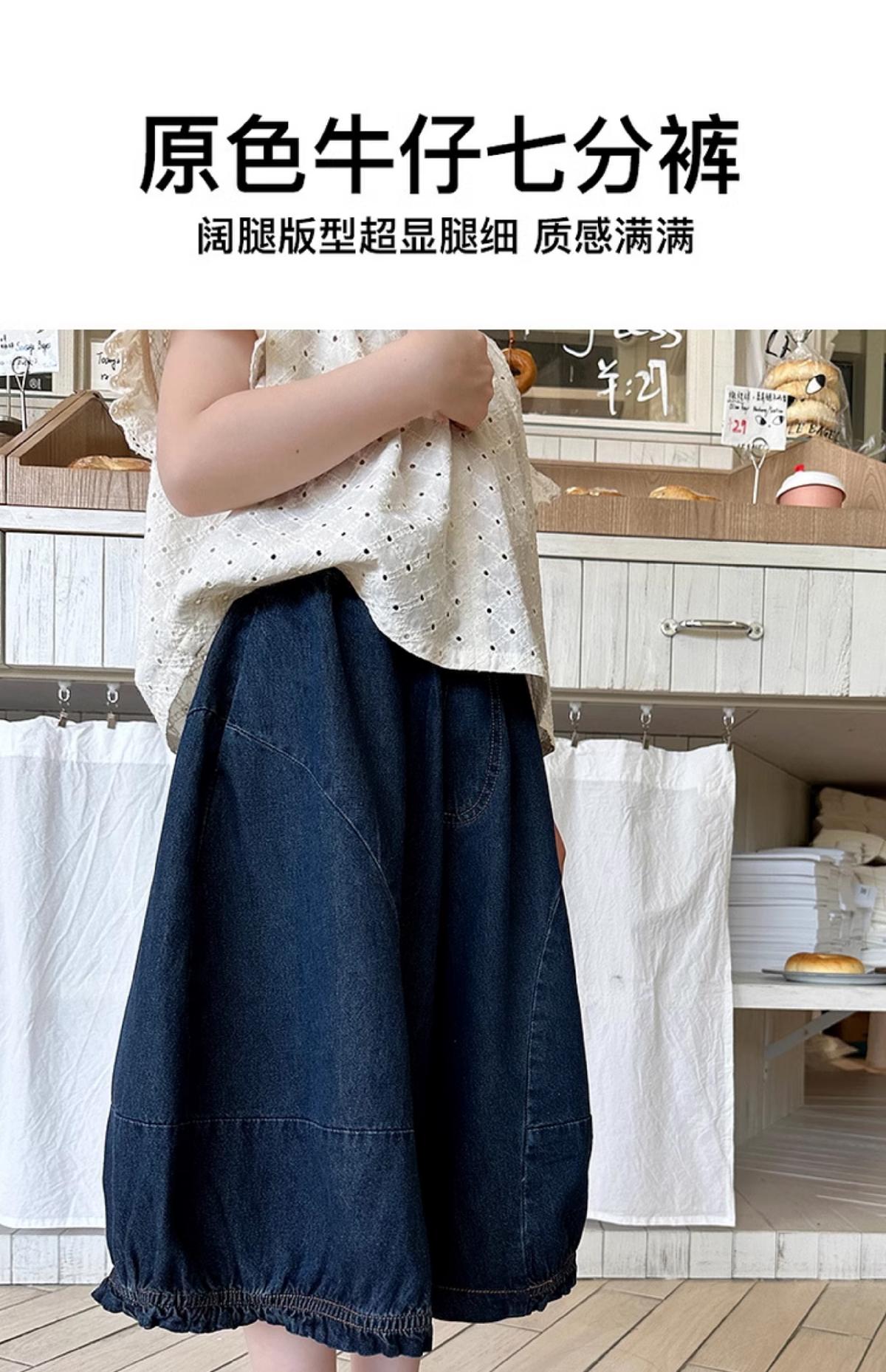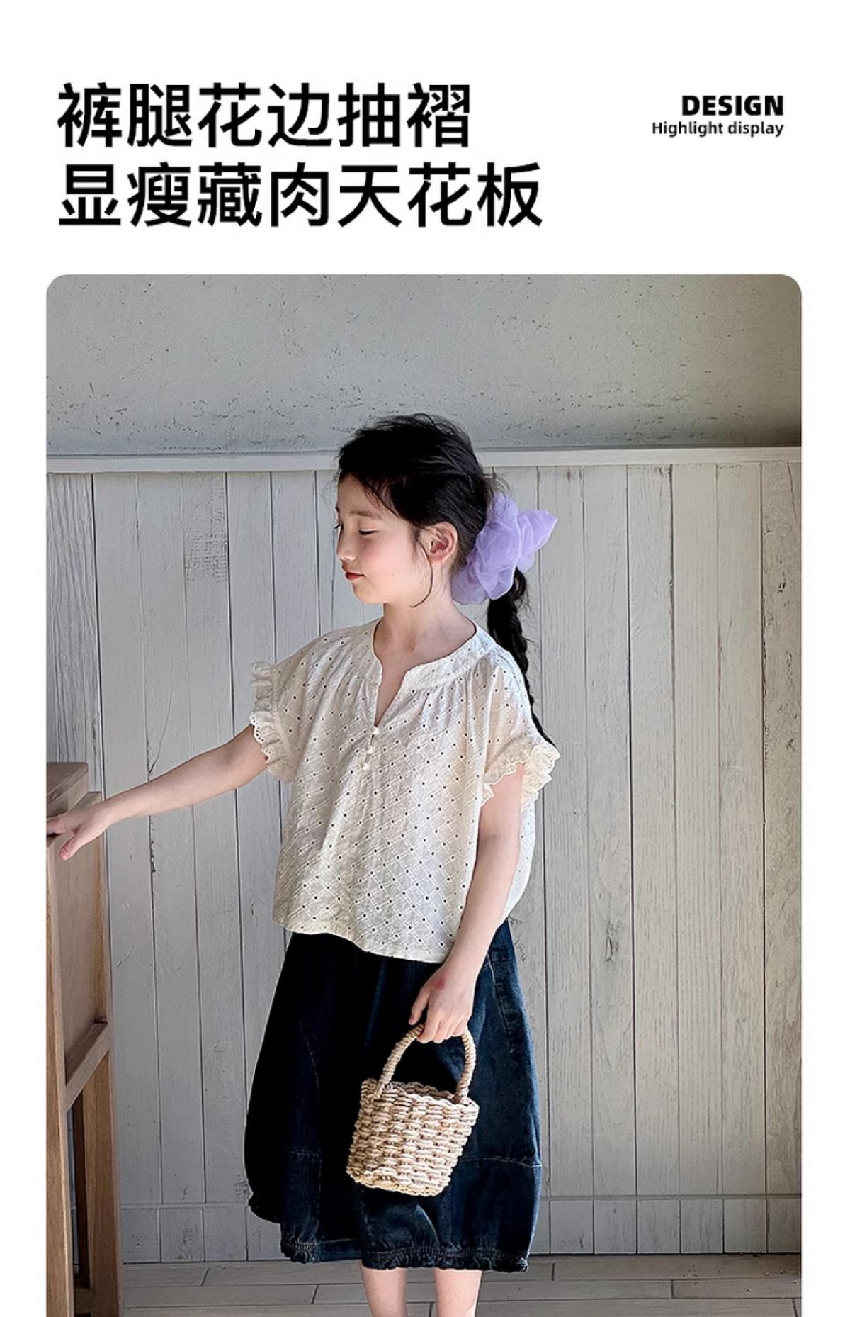 女童牛仔七分褲2025夏季新款洋氣女孩濶腿牛仔褲薄款兒童花邊褲子