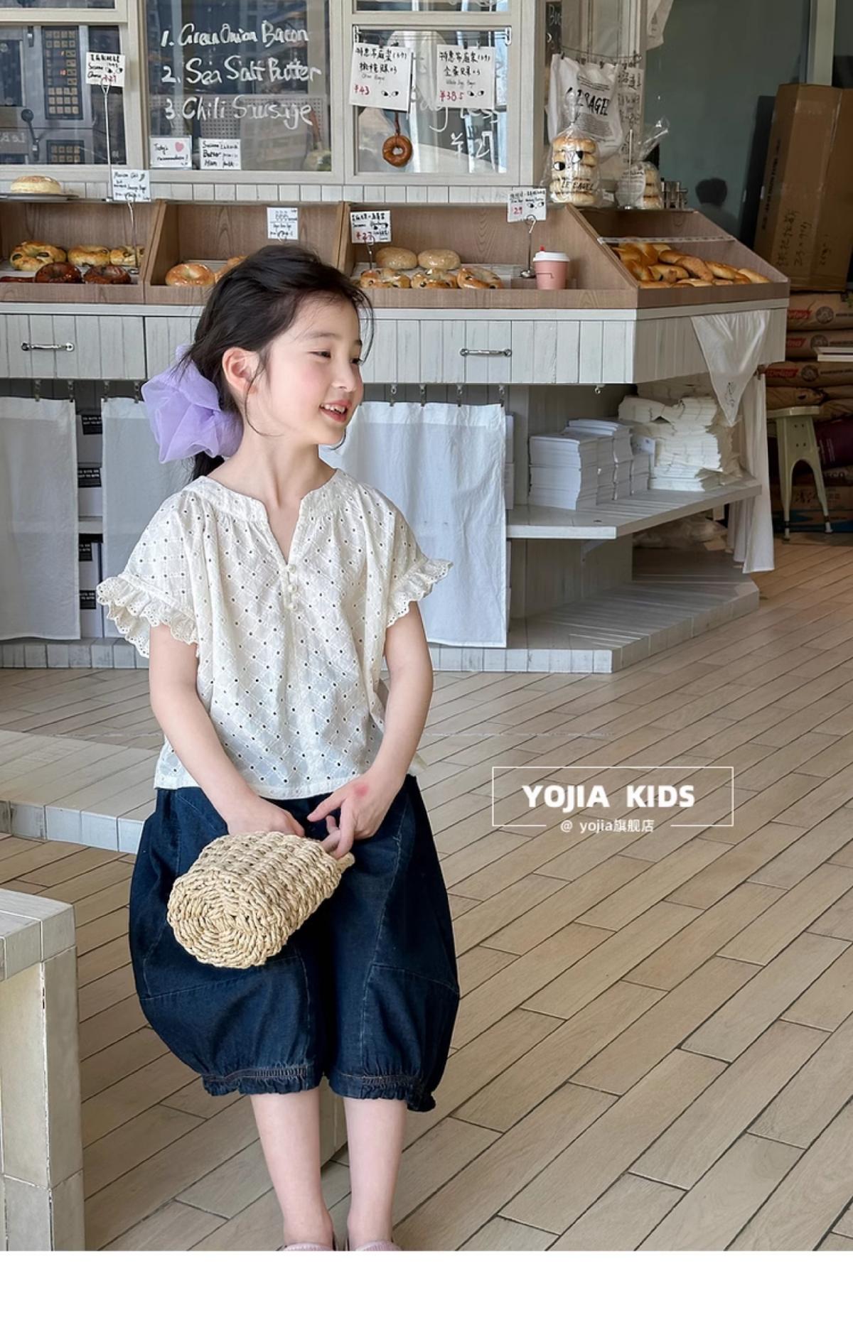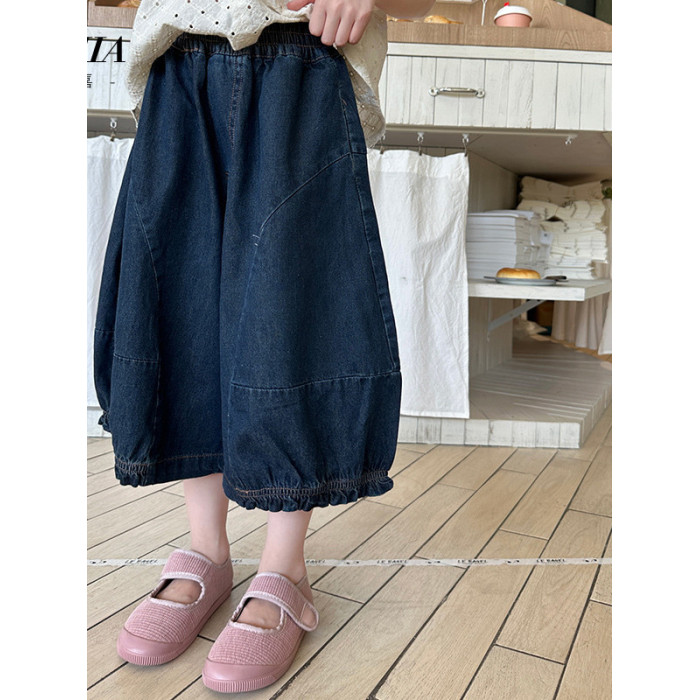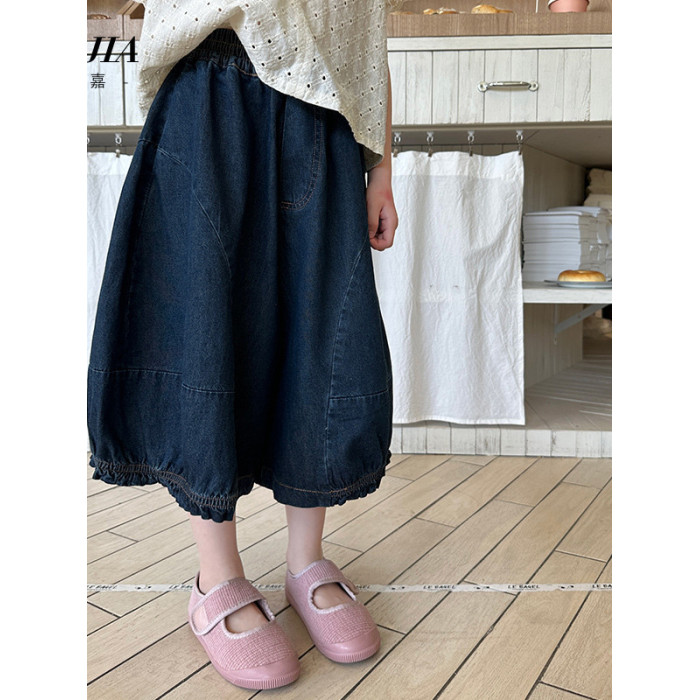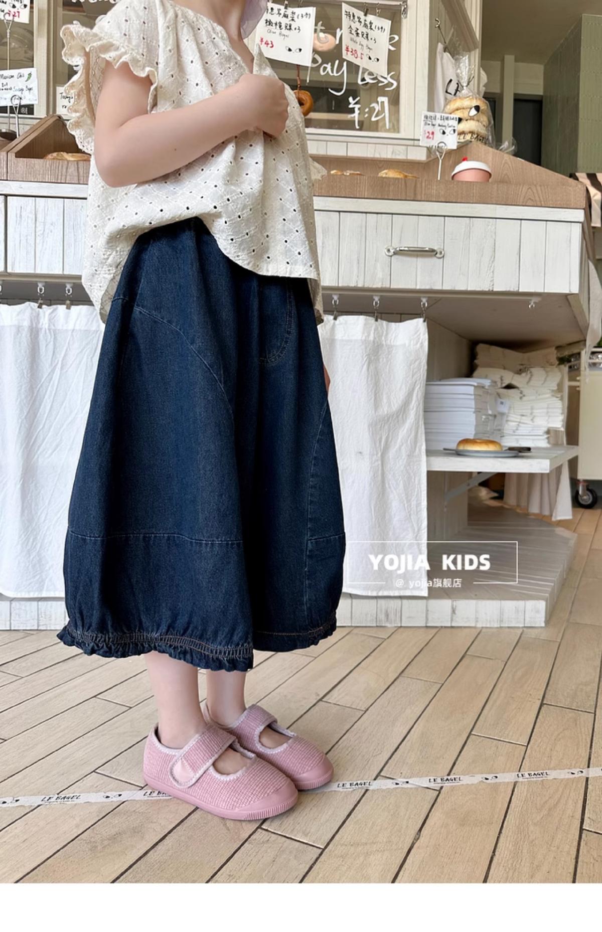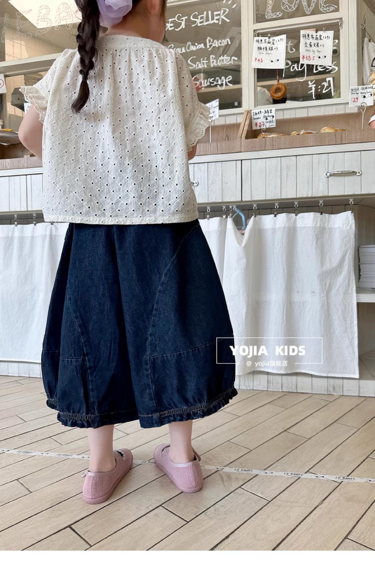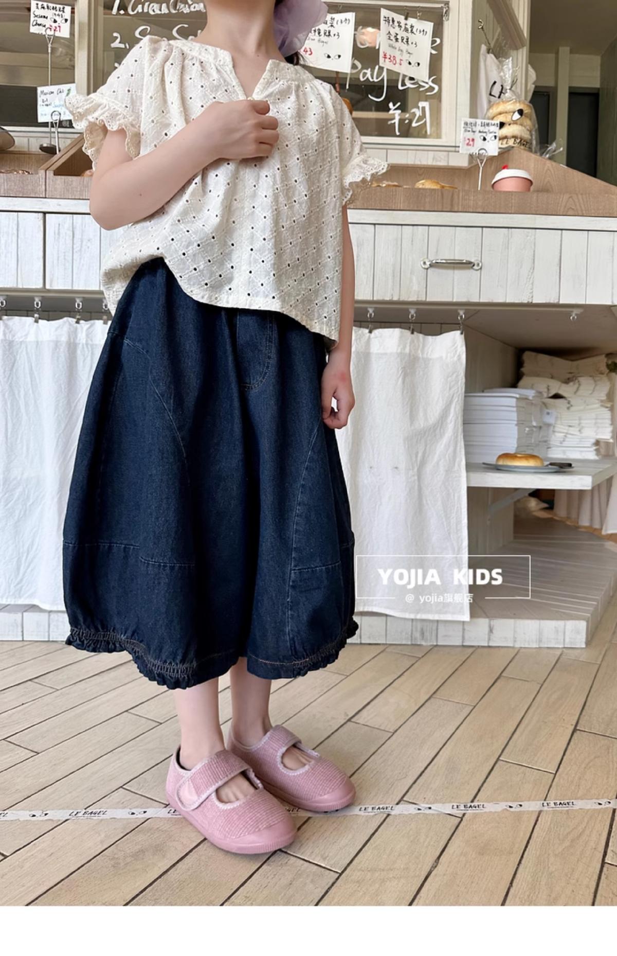 女童牛仔七分褲2025夏季新款洋氣女孩濶腿牛仔褲薄款兒童花邊褲子