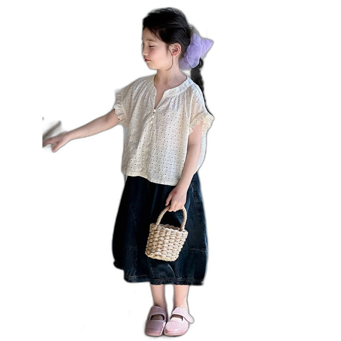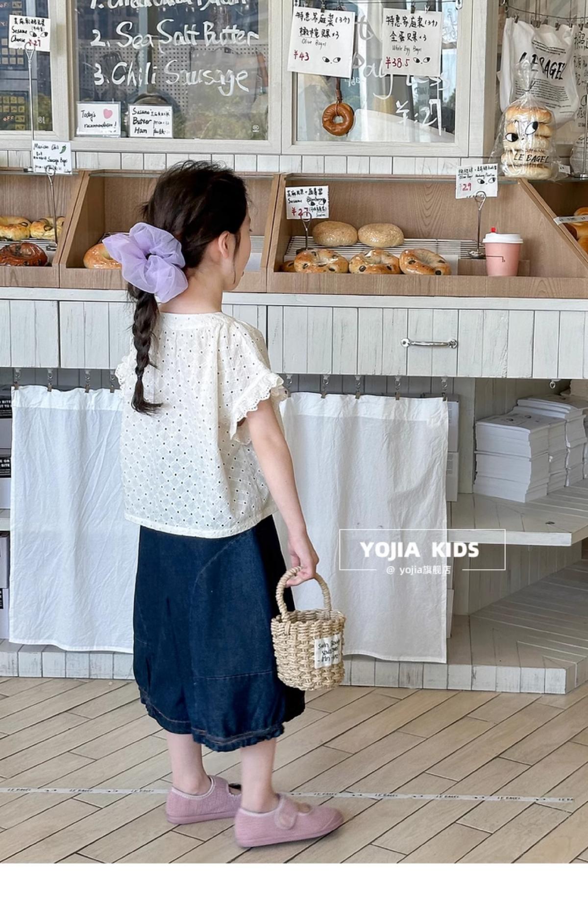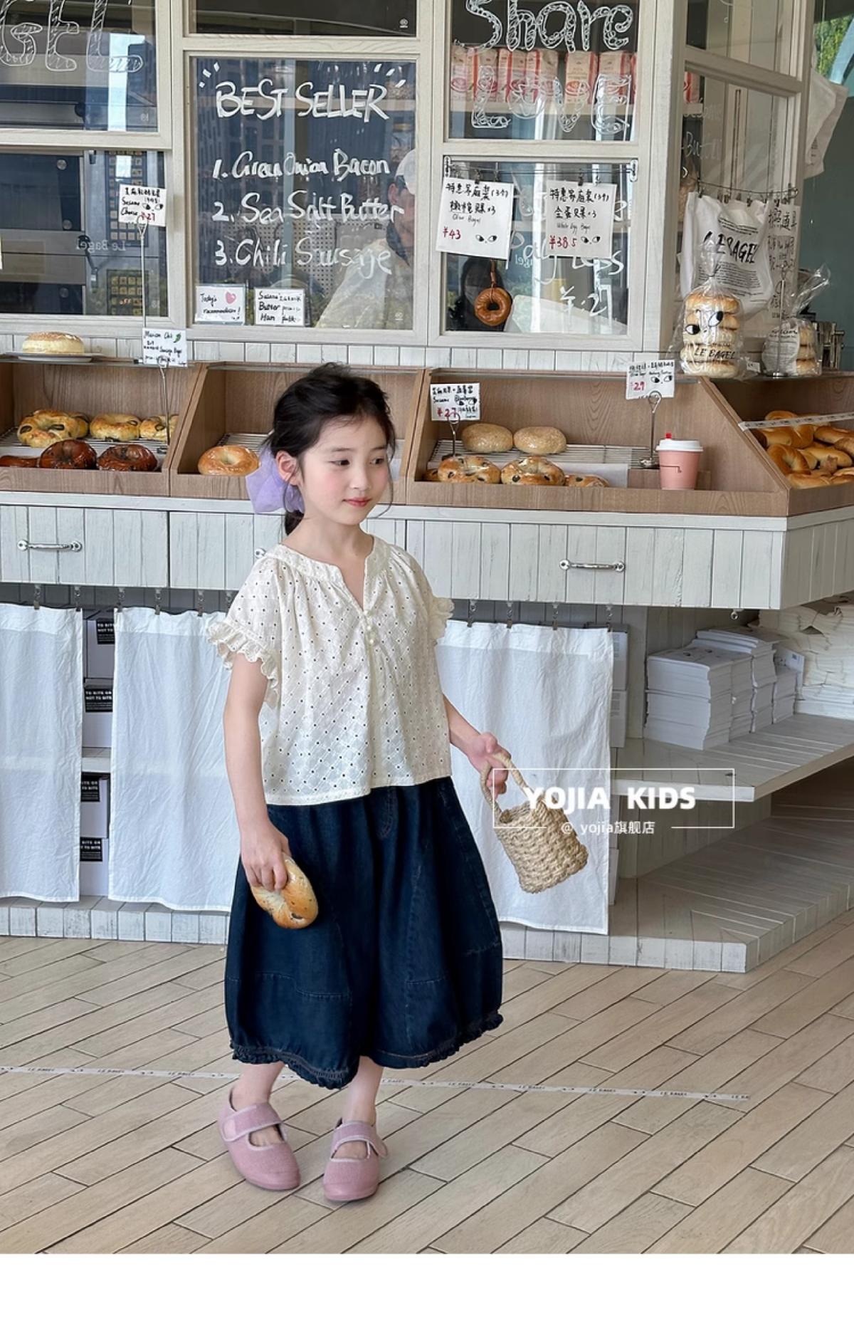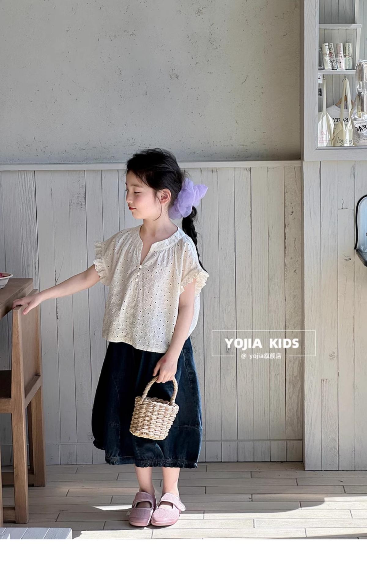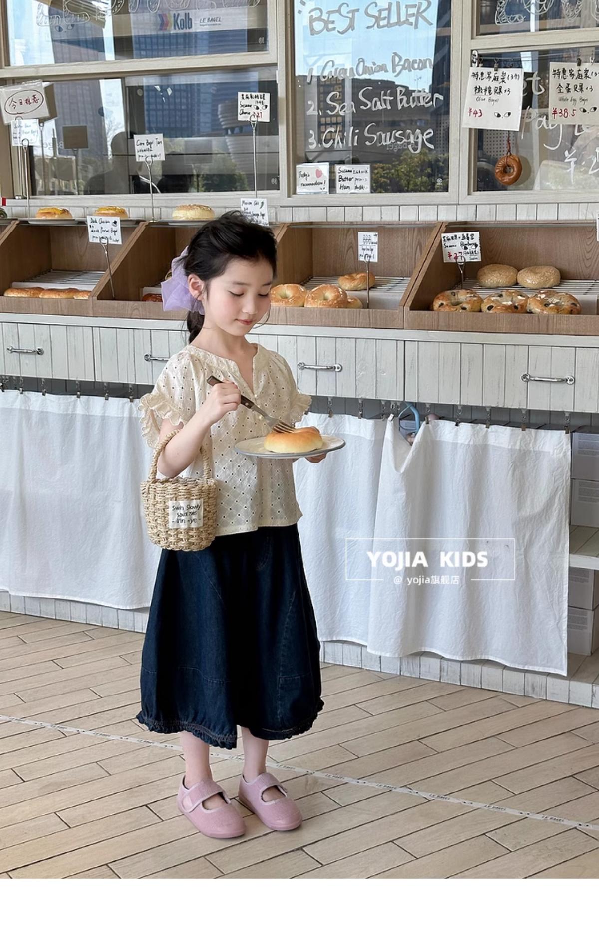 女童牛仔七分褲2025夏季新款洋氣女孩濶腿牛仔褲薄款兒童花邊褲子