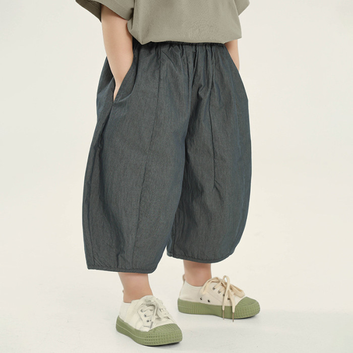 廓形速乾男童褲子夏裝新款兒童拼接薄款七分褲中小童寬松休閒褲