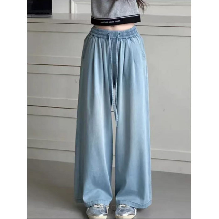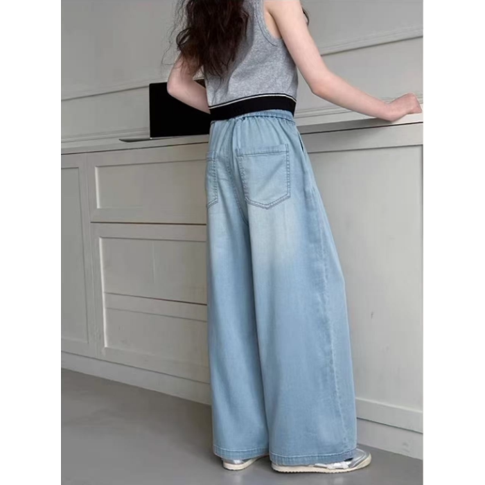 女童夏季冰絲防蚊褲2025新款洋氣大童天絲牛仔褲夏薄款休閒濶腿褲