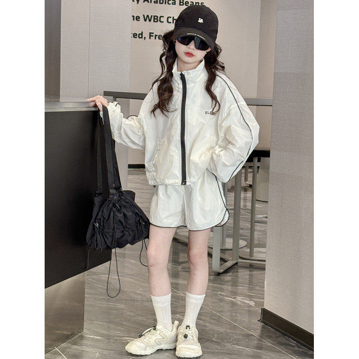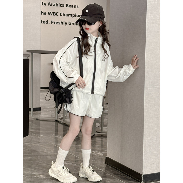 女童夏裝防曬衣套裝2025新款兒童防紫外線防曬服中大童運動兩件套