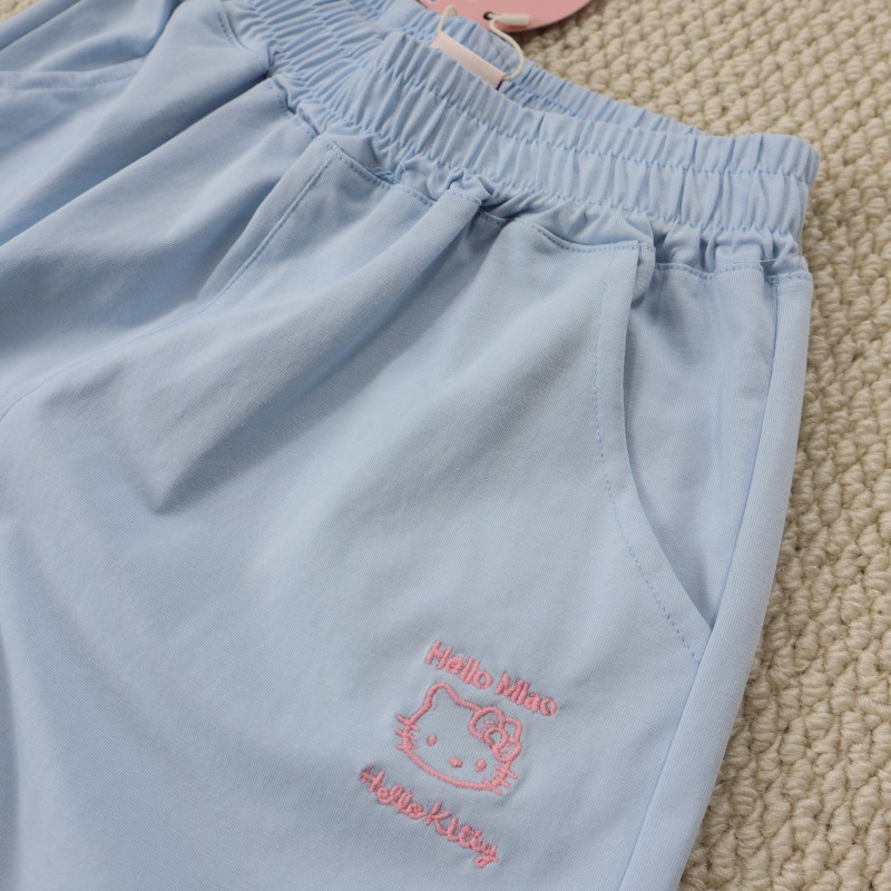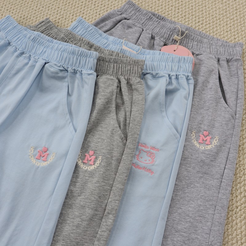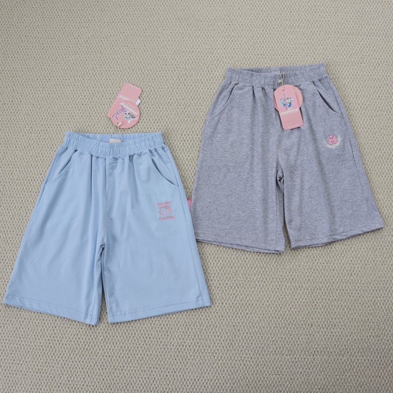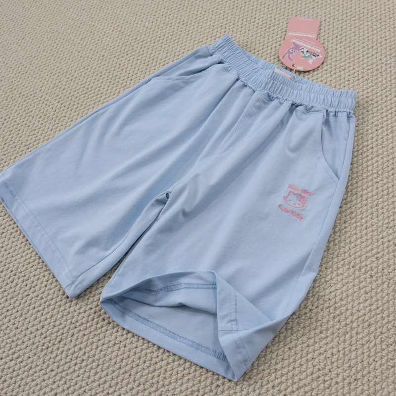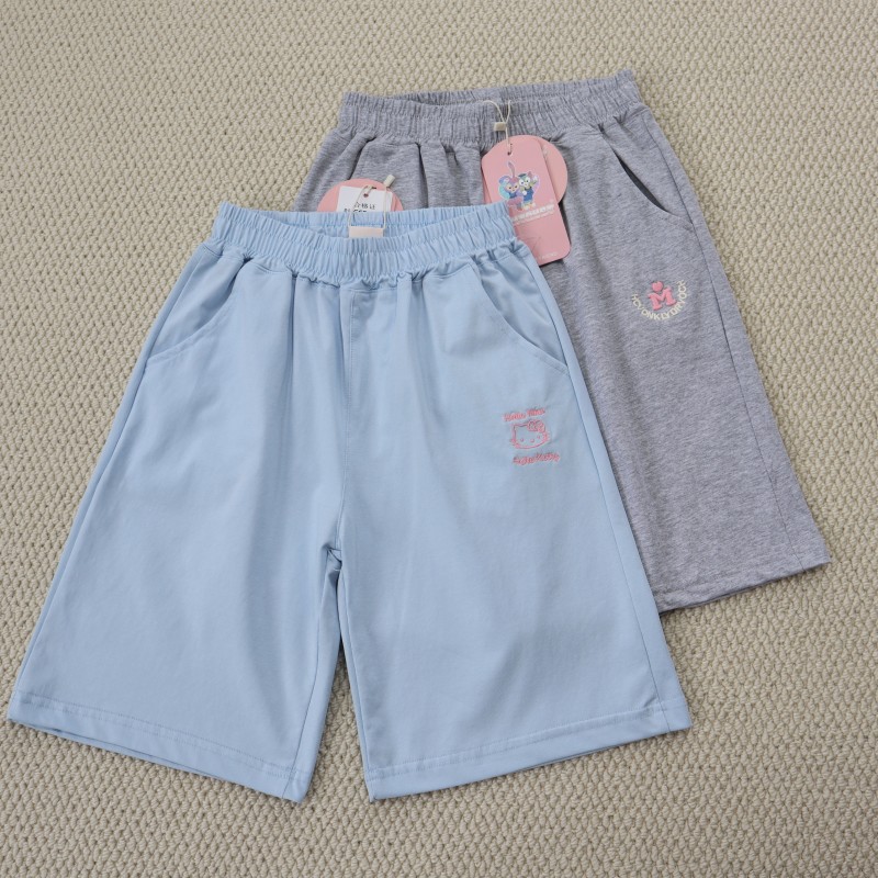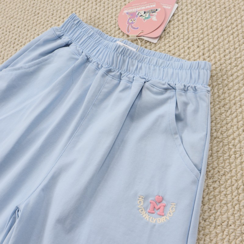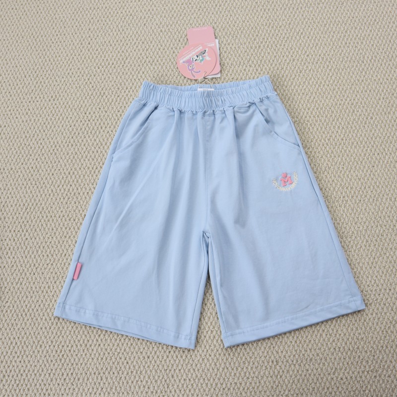 女童130-170碼青少年中大童松緊腰刺綉清涼舒適百搭五分褲