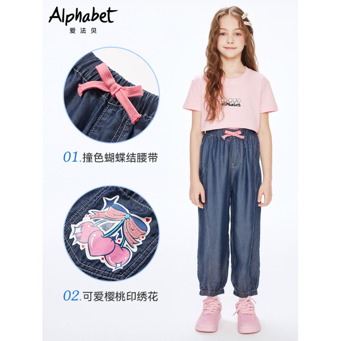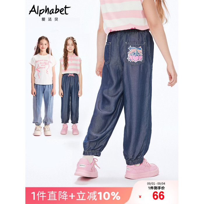 【純天絲】2025春夏新款女童牛仔防蚊褲中大兒童裝休閒褲子薄洋氣