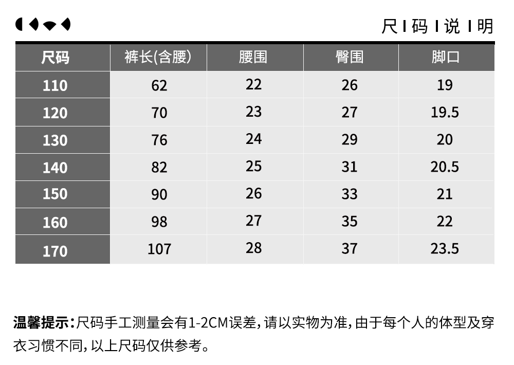 款式及尺寸: