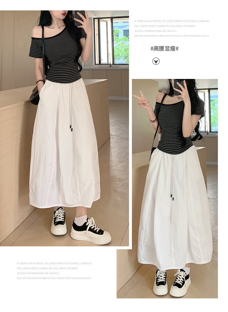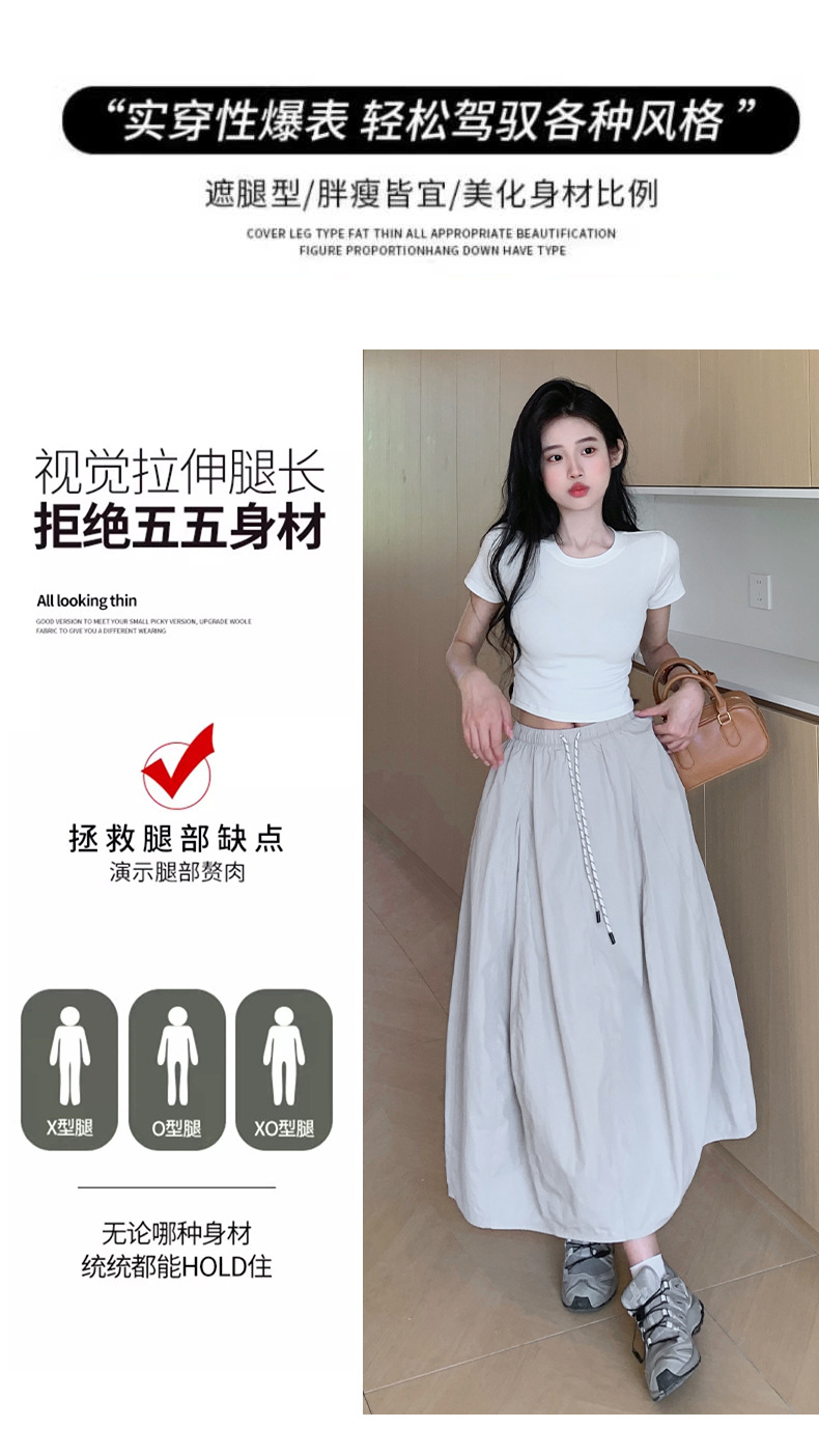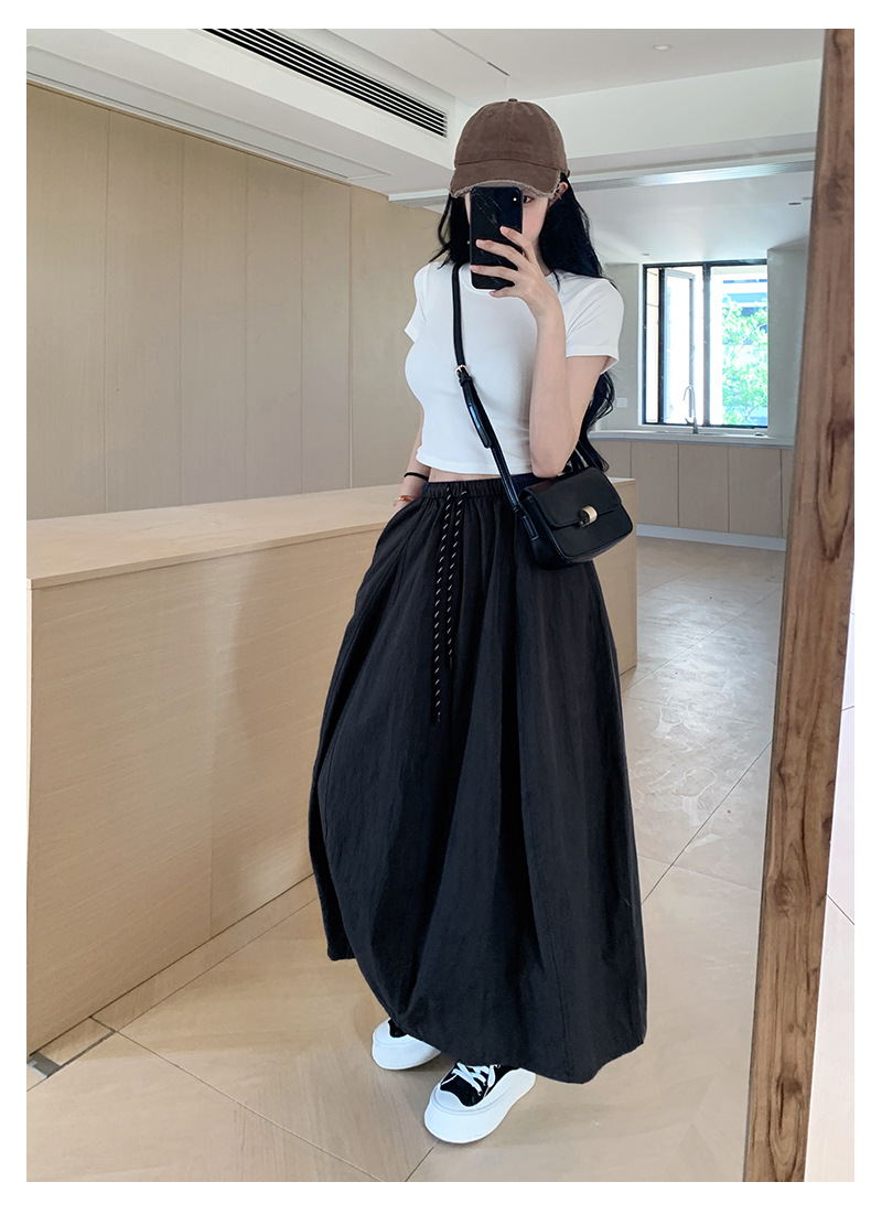 超出片!!簡約風抽繩百搭顯瘦南瓜裙少女感中長裙夏季花苞裙子