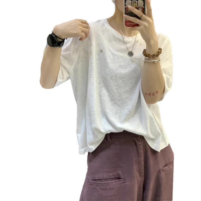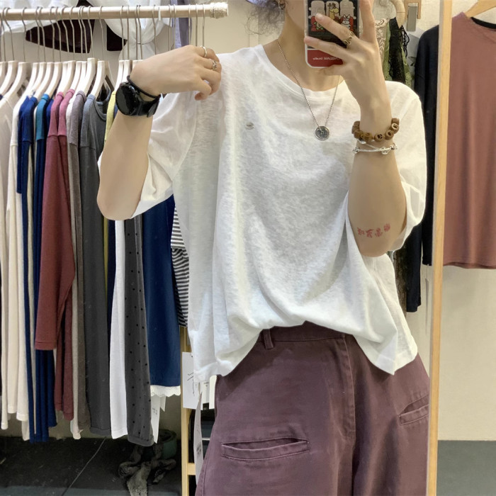 柔軟雪花棉麻T恤韓國短袖夏季純色寬松顯瘦上衣女百搭透氣打底衫