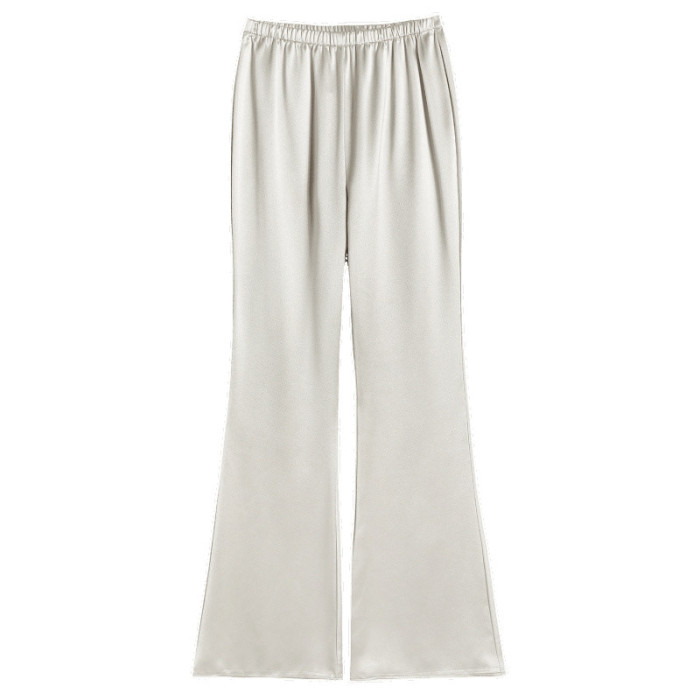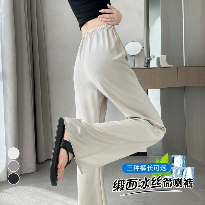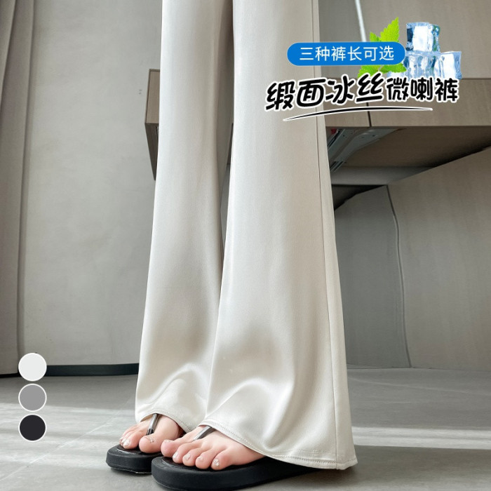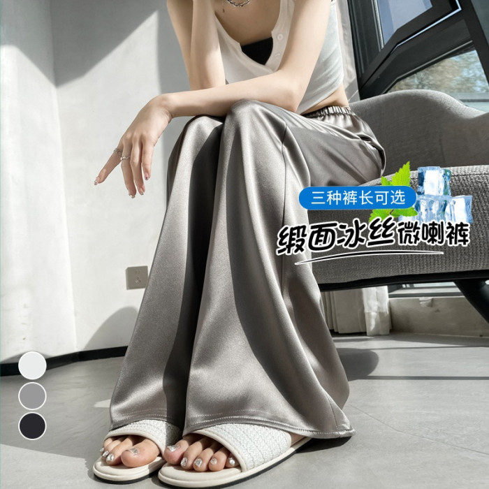2025夏季新款緞面冰絲微喇褲高腰醋酸濶腿休閒褲拖地褲女