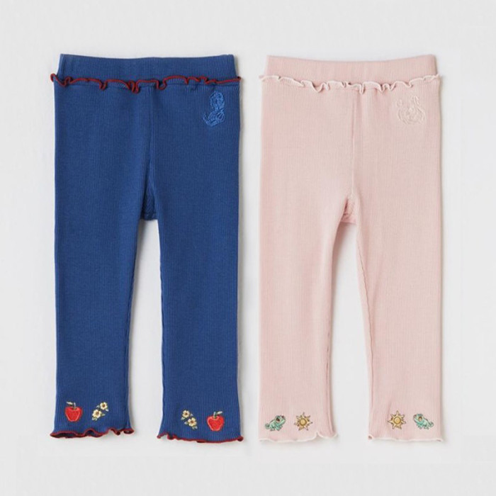 兒童春秋款女童打底褲純棉長褲中大童可愛公主刺綉花邊彈力長褲