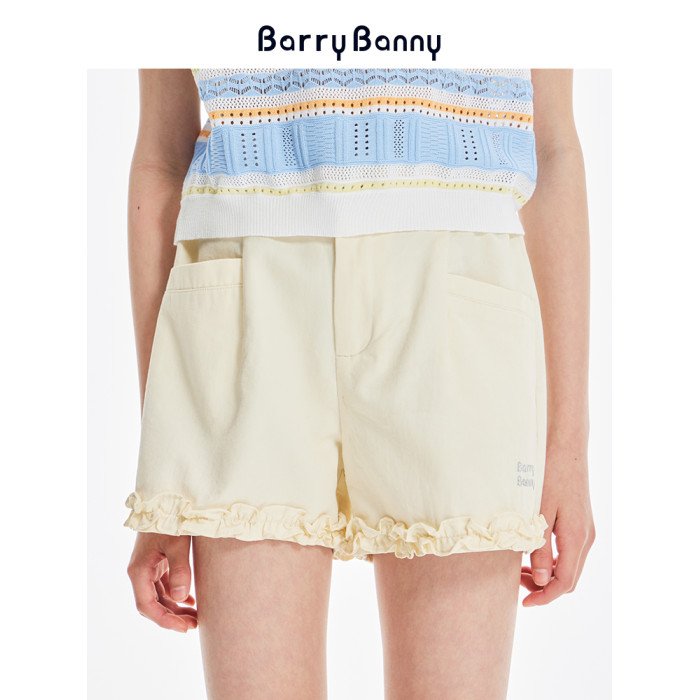 BarryBanny女童萊賽爾短褲2025夏季新款兒童休閒褲中大童花邊褲子