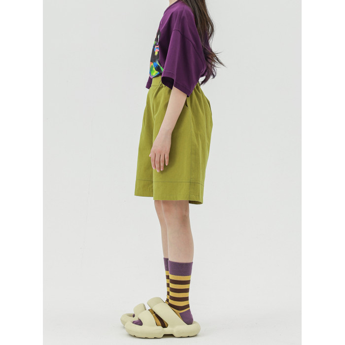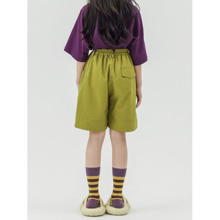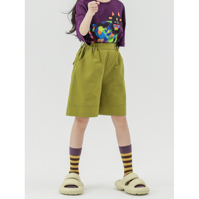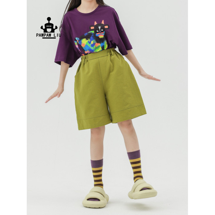 Pawpaw Liu原創設計女童短褲2025夏款兒童文藝薑黃色寬松五分短褲