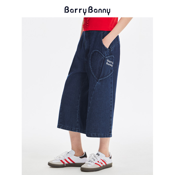 BarryBanny女童牛仔褲2025夏季新款兒童七分褲寬松濶腿褲直筒褲子